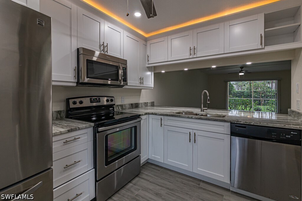 KING'S LAKE**2 BED 2 BATH**UNFURNISHED**Experience luxury living in this newly remodeled 2-bedroom,2-bath condo at Greenwood Village! Indulge in the exquisite kitchen featuring granite countertops,brand-new stainless-steel appliances,and custom cabinets. The master bedroom boasts a walk-in closet and upgraded master bathroom,while the second bedroom offers ample space and style. Enjoy the open floor plan with sliding glass doors leading to a tiled,screened-in lanai overlooking a picturesque preserve. Greenwood Village amenities include a community pool and a scenic walking path around the central lake. Conveniently located within walking distance to Publix,Starbucks,and more at King's Lake Plaza,and just minutes away from downtown Naples. Live in luxury at Greenwood Village! **FIRST,LAST,AND SECURITY IS REQUIRED TO MOVE IN** SORRY,NO PETS ALLOWED PER THE HOA!