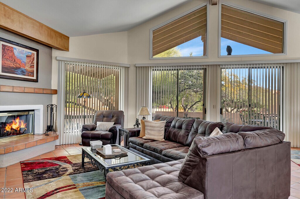 Gorgeous furnished 2 bed plus office den,2.5 bath,great room,dining and breakfast room available in the highly desirable resort style 55+ active adult community of Rio Verde. Bright interior with lots of natural light. Open kitchen with double island that opens to dining areas plus planning desk. Primary suite has jet tub and walk in shower. Den includes desk and trundle bed for any extra guests. Large patio with BBQ grill,fire table and lots of room to relax and enjoy Arizona's beautiful desert landscape and mountain views. Amenities include clubhouse,fitness center,pickleball,bocce & tennis courts,Resort-style heated pool with spa and sun deck,library,art room & MORE. Golf Cart Included! This home includes everything you need for a vacation or temporary housing.