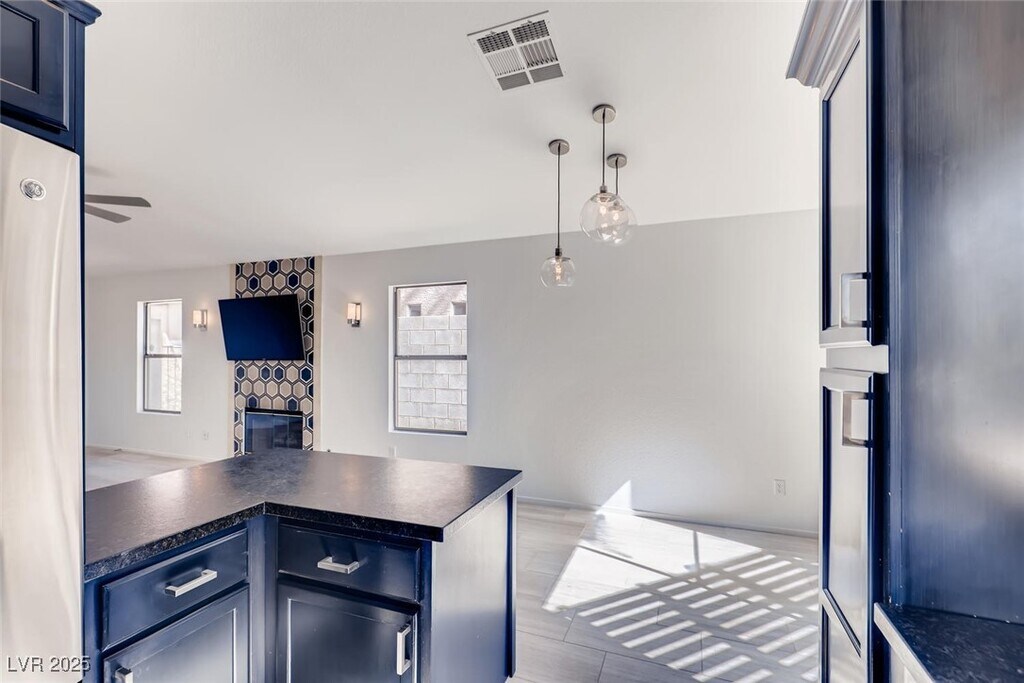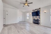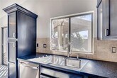 This beautifully remodeled single-story Summerlin home has tile flooring throughout excluding the 3 bedrooms that have carpet. Kitchen is unique, reconfigured with double stack espresso cabinets and leathered granite countertops and stainless steel undermount sink and appliances. Tumbled stone backsplash finishes off the features in the kitchen. Both bathrooms bath surrounds and vanities are upgraded. Come and see the designer features for yourself!