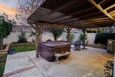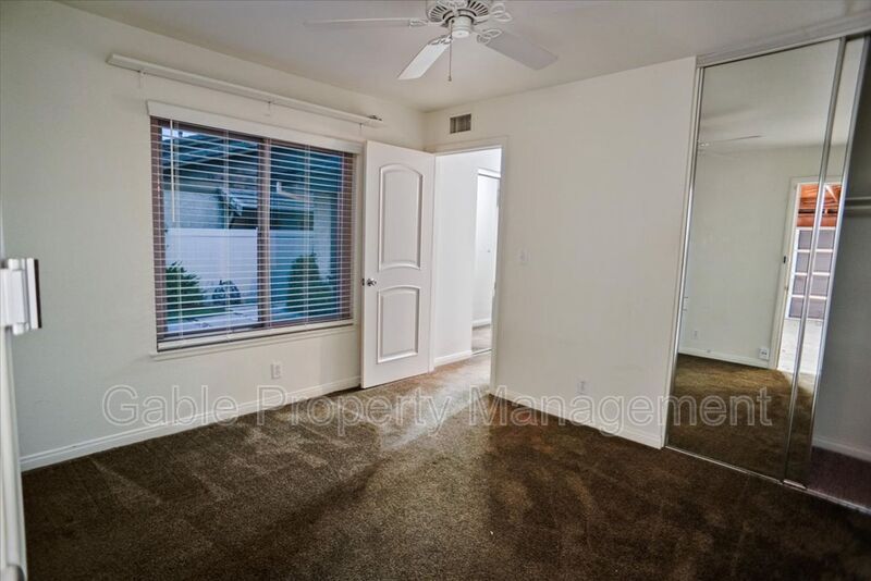 Welcome to this charming single-story home located in the desirable Sunrise community of Valencia. This 2-bedroom, 2-bath residence offers great curb appeal and sits on a quiet cul-de-sac. The front door is privately located behind a gated walkway, and the home features an attached 2-car garage and a welcoming sitting area. Step inside to a freshly painted living room with tile flooring and a large window that fills the space with natural light. The adjacent dining area includes a ceiling fan and flows seamlessly into the upgraded kitchen, which boasts updated countertops, white cabinetry, recessed lighting, black appliances, and a window overlooking the backyard. Both bedrooms are generously sized and feature ceiling fans and mirrored wardrobes. One closet includes custom organizers. The primary bedroom offers an attached bathroom with an updated vanity and a walk-in shower. The hallway bathroom has also been upgraded with a modern vanity and a shower/tub combination. Additional highlights include an attached 2-car garage with laundry hookups and a private backyard perfect for relaxing or entertaining. The backyard features a covered patio, sitting area, spa, and a grassy space. The Sunrise community offers excellent amenities including a pool, spa, walking paths, parks, and tennis courts. Conveniently located near award-winning schools, shopping, dining, and easy freeway access.