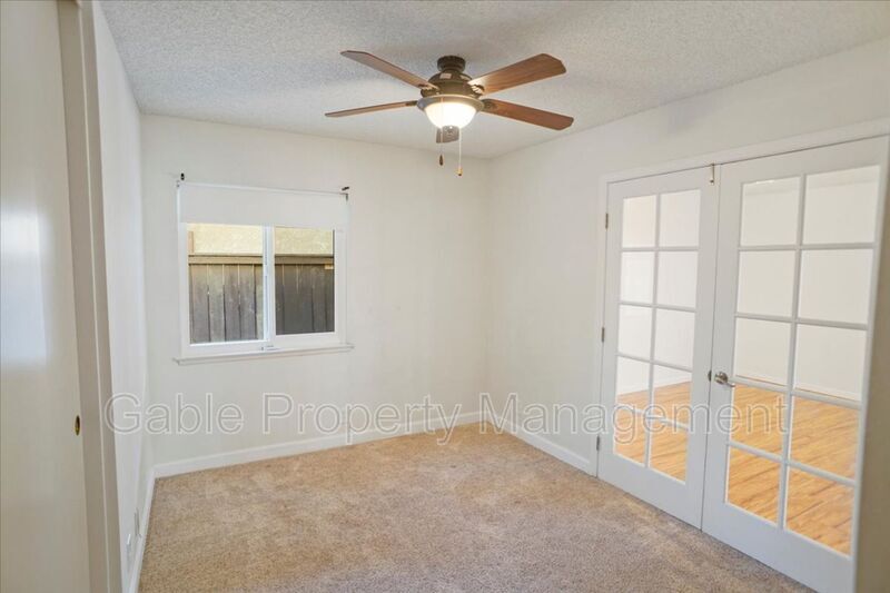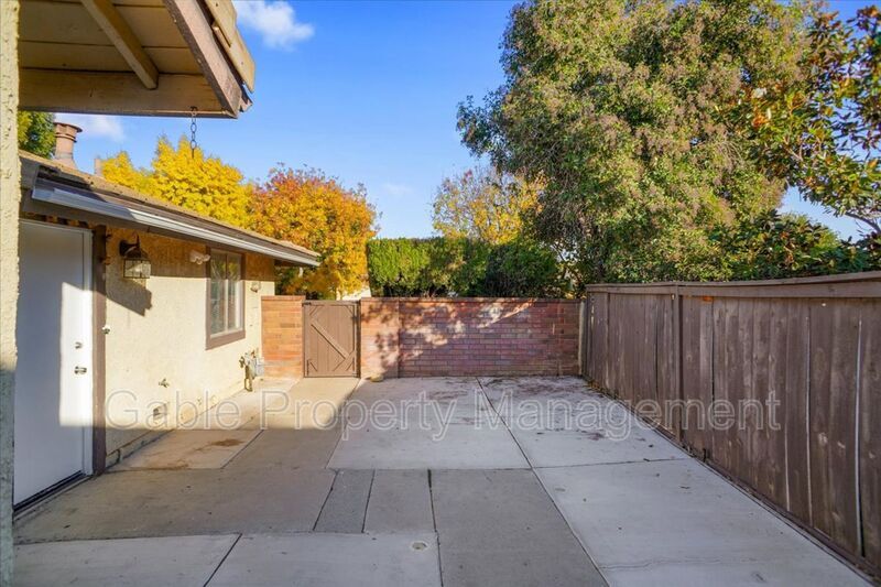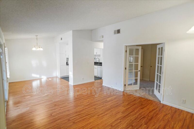 Welcome to this charming single-story home tucked away on a quiet cul-de-sac in one of Valencia’s most desirable neighborhoods. Featuring 3 bedrooms and 2 bathrooms, this light-filled residence offers high ceilings, wood flooring, and an open, airy layout designed for comfortable living. The home boasts an extra-long driveway and a gated entry leading to the front door, complete with a side yard and a spacious, low-maintenance backyard with turf and patio cover—perfect for relaxing or entertaining. Double doors open to a versatile first bedroom with a closet, ideal for a home office or guest room. The upgraded kitchen showcases custom white cabinetry, dark gray countertops, stainless steel deep sink with upgraded faucet, and appliances including oven, dishwasher, and microwave. Adjacent dining and living areas feature abundant natural light, wood shutters, and elegant finishes throughout. The hallway bathroom has a beautifully tiled shower/tub combination and includes an upgraded vanity and mirror. The primary suite opens to double doors and features wood floors, mirrored wardrobes, a ceiling fan, and includes a primary bath with a walk-in shower. Additional highlights include a two-car garage and thoughtful upgrades throughout the home. Residents enjoy access to community amenities including a pool, spa, walking paths, parks, and tennis courts. Conveniently located near award-winning schools, restaurants, shopping, and easy freeway access.