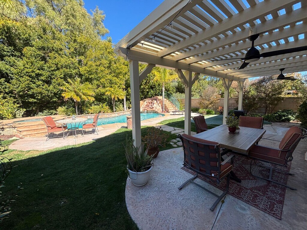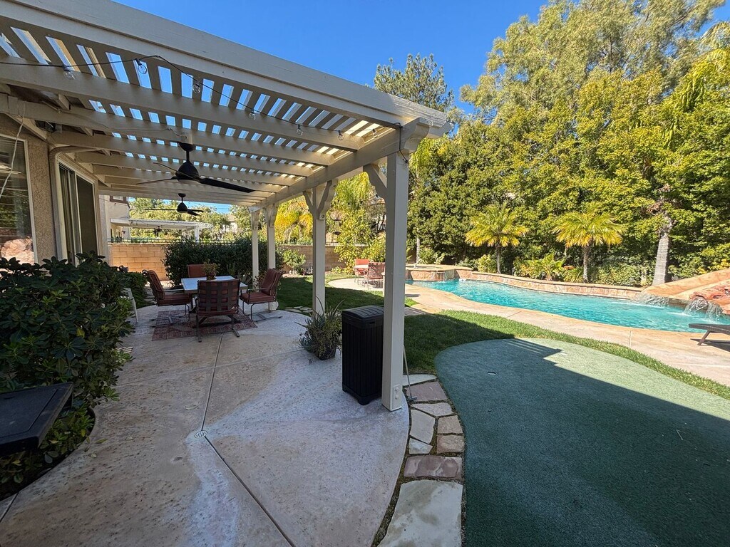 Experience resort-style living in this expansive 3,076 sq. ft. executive home located in the highly sought-after community of Stevenson Ranch. This impressive residence offers 5 bedrooms and 2.5 bathrooms, featuring an open floor plan with soaring vaulted ceilings, recessed lighting, and a mix of high-end finishes including vinyl plank flooring, ceramic tile, and neutral carpeting. The home is designed for both comfort and entertainment, boasting a separate family room with a cozy fireplace, a formal dining room, and a built-in wet bar. The heart of the home is the beautifully remodeled kitchen, which opens directly to the family room. It features a large center island, granite countertops, and premium finishes. The functional layout includes a convenient downstairs bedroom and a dedicated in-unit laundry room equipped with a utility sink and extra storage space. The primary suite is a true retreat, highlighted by a spacious walk-in closet and California Style custom closet organizers for ultimate organization. Step outside to your own private oasis. The backyard is an entertainer's dream, featuring a covered patio and a private pool and spa complete with an exciting water slide. For your convenience, both pool and gardener services are included in the rent. Tech-forward features include a 220V EV charger in the three-car attached garage and central air and heat with ceiling fans throughout. Residents also enjoy access to prestigious Stevenson Ranch community amenities, including a clubhouse, tennis courts, basketball courts, a baseball field, and a community park and playground. This home is located in a prime Santa Clarita Valley neighborhood and will be available on April 10th. Dogs are considered. - IMPORTANT NOTES: Visit the page on our website "Renting a Property" for a detailed explanation of our application and approval process. Please review our Pet Policy for associated fees and requirements. More details here: At California Leasing, we strive to provide an experience that is cost-effective and convenient. That’s why we provide a Resident Benefits Package (RBP) to address common headaches for our residents. Our program handles insurance, air filter changes, utility set up, credit reporting, rewards and more at a rate of $50.95/month, added to every property as a required program. More details upon application. Most California Leasing homes come with high speed internet up to 1 Gig at a special group rate of $70.00, with premium support and setup powered by Second Nature to get you connected fast at move-in. Check your lease to see if your home is included in the program.