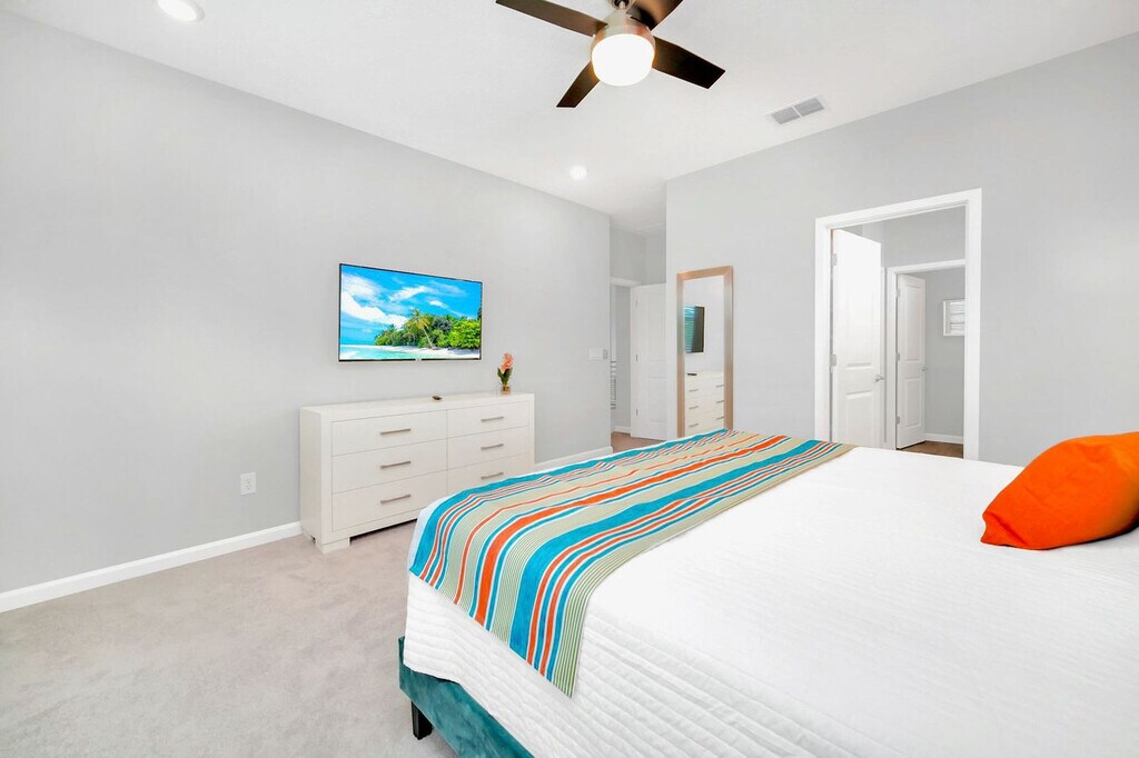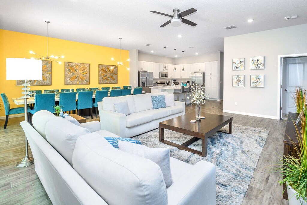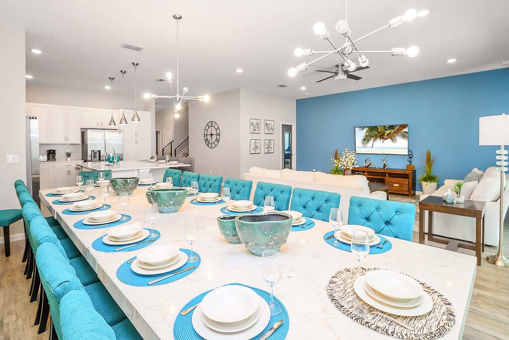 Feel at home in this stunning 12-bedroom family-friendly mansion located at Veranda Palms Resort. This mansion can host up to 26 guests and is only minutes away from Disney, top golf courses, shops, and restaurants. This home features a swimming pool with a removable safety fence, a spill-over hot tub jacuzzi, and a poolside dining area with space for 12. Sun loungers are also available. The games room includes air hockey, foosball, and table tennis, while the upstairs lounge has a large projector screen and a billiards table. The fully equipped kitchen boasts two full-sized fridge/freezer combos and two large-capacity dishwashers. Tech-savvy guests will appreciate the smart TVs and high-speed internet access, and central air conditioning will keep you cool. In-home laundry machines are provided for your convenience. Guests get free access to the Veranda Palms Resort, which features a secure gated entrance, a large resort-style swimming pool, an outdoor jacuzzi hot tub, waterslides, a children's splash zone, children's activities, a zero-entry pool, poolside cabanas and sun loungers, an air-conditioned fitness facility, playgrounds, and a clubhouse lounge. Pool and hot tub heating is available for an additional fee of $35/night per service and $60/night for both, with a minimum stay of 2 nights. A pack 'n play crib and a highchair are available for a one-time fee of $40 each. A one-time refill for the barbecue propane tank is available for $55. Veranda Palms is a family-friendly gated resort in the Kissimmee area of Orlando, easily reached from Highway 192, where you will find a vast selection of shops and restaurants. The community is a short drive away from Walt Disney World, Universal Studios, and SeaWorld. Veranda Palms is also just a short stroll away from the wonderful Shingle Creek Nature Reserve. Nearby attractions include the Camping World Stadium, Dr. Phillips Center for the Performing Arts, Amway Center, Orlando Science Center, Lake Eola Park, CFE Arena, Mennello Museum of American Art, Festival Park, Bob Carr Theatre, Cranes Roost Park, Lake Louisa State Park, Orlando City Stadium, Audubon Park Garden District, Orlando Watersports Complex, Formosa Gardens Event Center, Gaston Edwards Park, Lakeridge Winery, and The Florida Mall. Parties, events, and smoking/vaping are prohibited in or around the property and risk a fine. Late departures will result in a fine for each additional hour the property cannot be accessed for turnover. Outside of service animals, pets are not permitted at this property, and any evidence of pets will result in a fine. Firearms and weapons are strictly prohibited in this home. The spa bubbles feature is currently out of order. [SI]