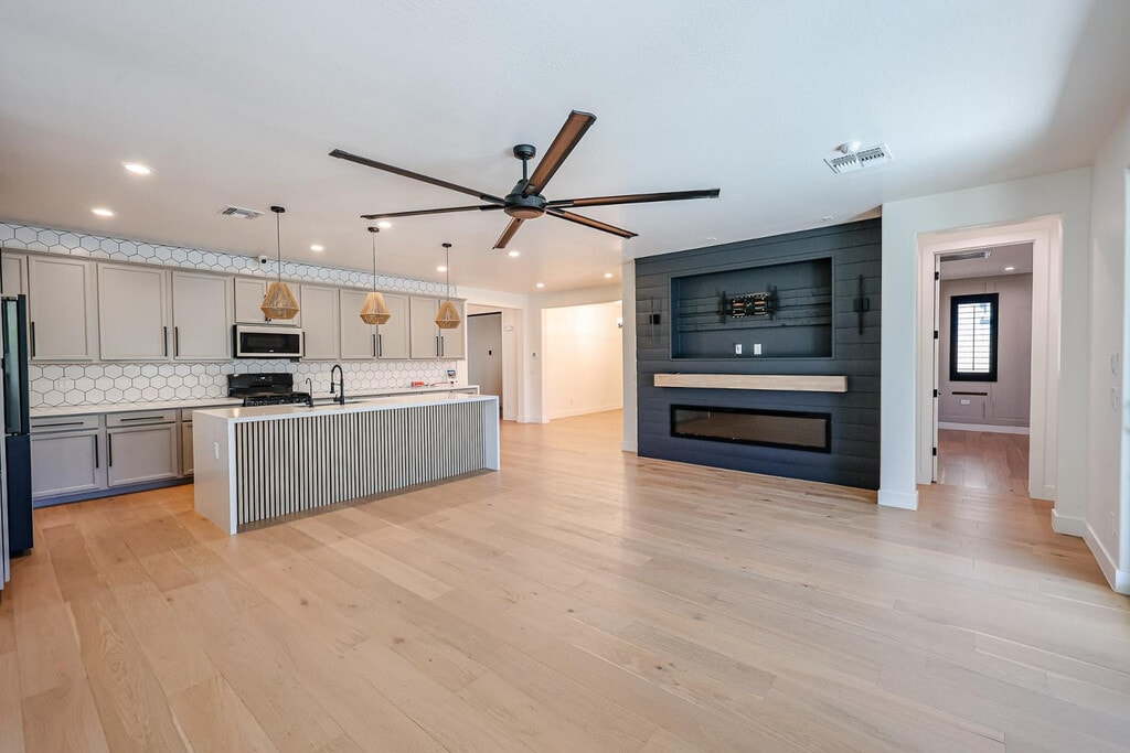 Wow-factor doesn't begin to describe this highly customized 2,455 square foot home with designer upgrades throughout. Featuring 3 bedrooms plus a den and 3.5 baths,the interior has been beautifully remodeled with elevated finishes and thoughtful details at every turn. Wide-plank engineered hardwood flooring flows throughout the main living areas,adding warmth,durability,and a refined finish. Fall in love with the wall finishes and the statement piece fireplace in the Great Room. A true standout is the incredible 4-car garage,including an RV bay that was upgraded with a second-story loft and private bathroomperfect for a studio,office,or guest retreatplus polyaspartic floors,built-in cabinets,and custom lighting. Step outside to a resort-style backyard made for entertaining with a massive pool with water feature,spa,synthetic turf,extended covered patio with built-in wet bar,built-in BBQ area,and a cozy gas fire pit. The solar is a large 16.2 KW system with 40 Panels. This is a rare,one-of-a-kind home built to impress property.