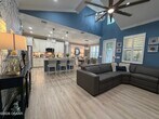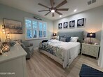 Welcome to this beautifully Fully Furnished Dreamsicle Model,perfectly positioned across from a serene preserve with a walking trail leading to Salt Shaker Park. This inviting home features a bright open floor plan,great room with vaulted ceiling,ideal for relaxing. The primary suite offers comfort and privacy with pocket door leading to the bathroom featuring a tiled walk-in shower,private water closet,double bowl vanity,and spacious walk-in closet.a second bedroom and den/hobby room with built-in desk provides flexible living space for guests or work from home needs. The second bathroom includes a tiled tub/shower combination. Additional highlights include a laundry room with washer/dryer,two car garage with 1 car assigned parking space- just bring your clothing & start enjoying the lifestyle. Latitude Margaritaville had it all restaurant,resort style pool,indoor lap pool,sport pool,pickleball,tennis,shuttle to beach club,Live Music 7 days!,Resort living at its finest!