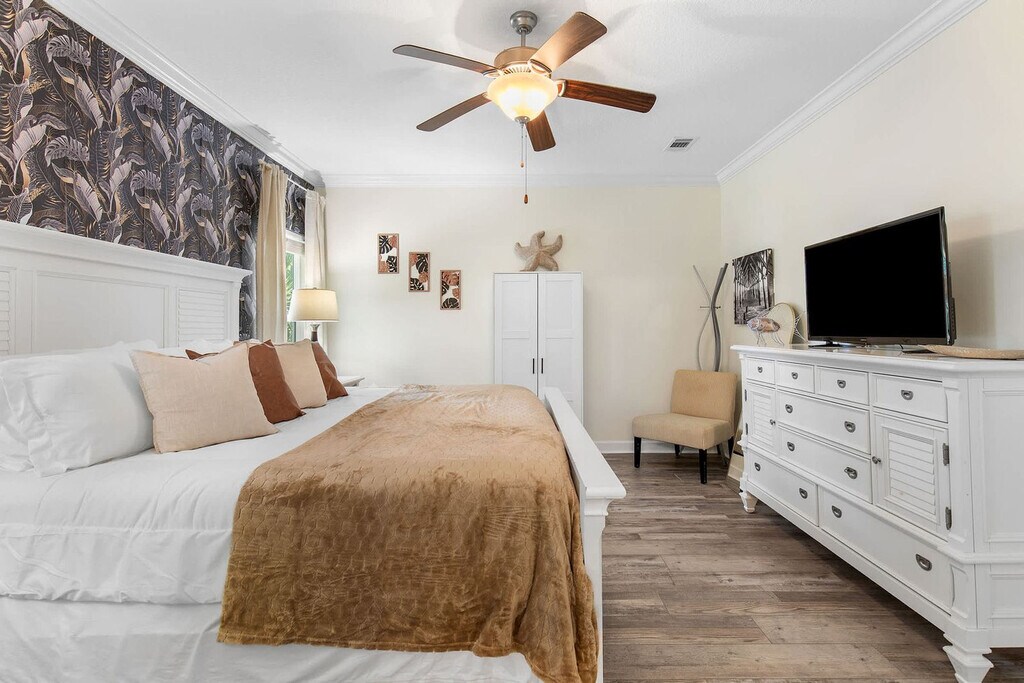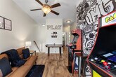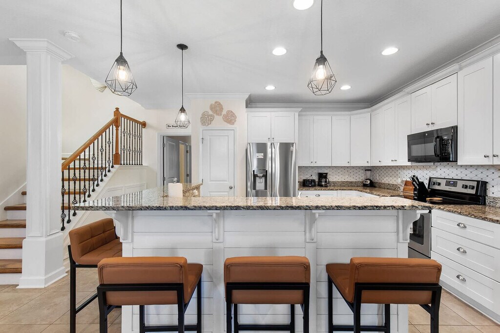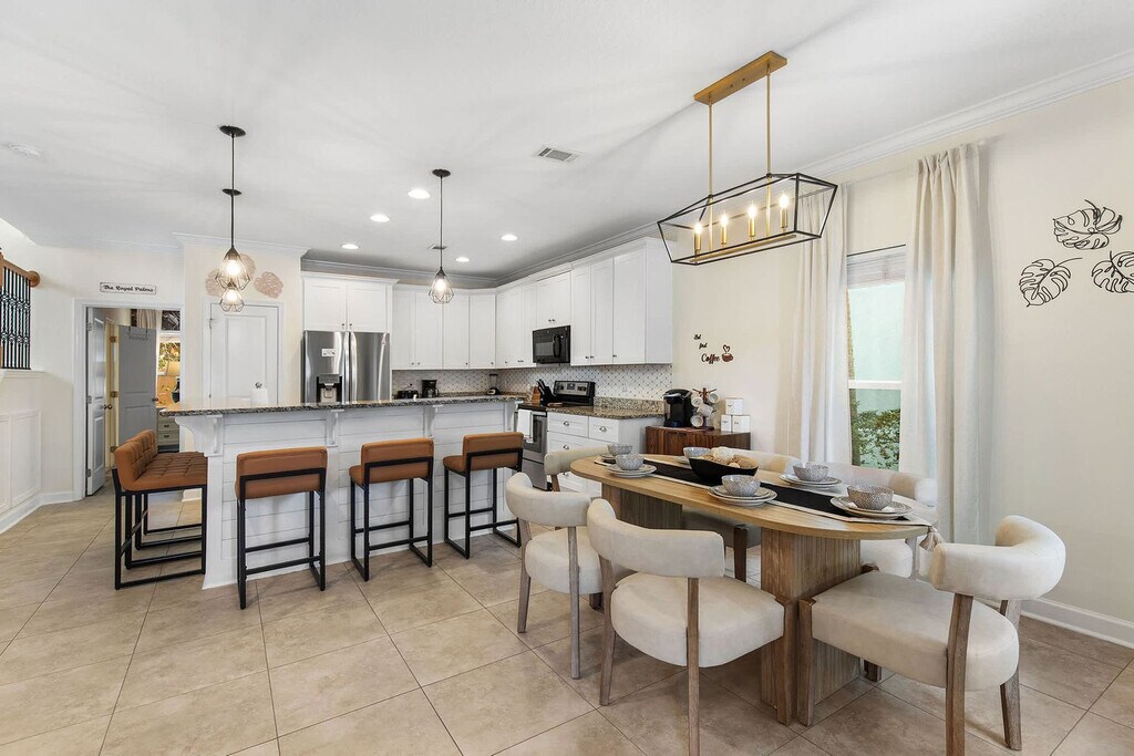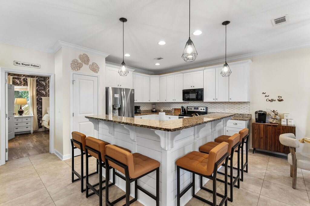 Welcome to your Beachside Escape in Destin! This beautiful 4-bedroom, 3.5-bathroom coastal retreat features an arcade room, coffee bar, and dedicated workspace. Enjoy community perks like a pool, hot tub, and free seasonal beach shuttle—all just minutes from the sugar-white sands of Destin! This spacious home sleeps up to 12 guests comfortably, making it perfect for family vacations, group getaways, and memory-making with friends. With a bright open floor plan, stylish bedrooms, and fun entertainment spaces, it’s the ultimate spot to relax after a day of sun and adventure. The main floor includes a King Master Suite with Smart TV, ensuite bath, and plush seating, a chef’s kitchen with high-end appliances, large island seating, and coffee bar, and a living room with a large leather sofa, Smart TV, and open flow to dining. The upper floor features a Queen Suite with ensuite bath and remote work desk, a Queen Bedroom with balcony access, a Bunk Room with 2 twin bunk beds (sleeps 4), and an arcade/game room with air hockey, arcade games, and a leather couch. This home includes 12 wristbands for guest use to access the community pool. All guests ages 5 and older are required to wear a wristband for entry to the pool. A $50 replacement fee per wristband will be charged for any that are lost or missing. The resort-style community pool is open daily from 10:00 AM to 10:00 PM, featuring a zero-entry walk-in area, three stunning waterfalls, and beautifully landscaped surroundings. With plenty of seating and lounging areas, it’s the perfect spot to soak up the Florida sunshine with family and friends. Nearby attractions include Destin Commons, an open-air shopping, dining, and entertainment hub just 0.5 miles away, and Henderson Beach State Park, with sugar-white sands, emerald waters, nature trails, and picnic areas, located 2.0 miles away. Big Kahuna’s Water & Adventure Park is 3.2 miles away, offering water slides, lazy rivers, mini-golf, and thrill rides. Destin Harbor & HarborWalk Village, 5.8 miles away, features waterfront shops, dining, live entertainment, and boating. The Destin History & Fishing Museum is 6.5 miles away, where you can explore the history of “The World’s Luckiest Fishing Village.” Nearby restaurants include Pazzo Italiano, Bric à Brac, Beach Walk Café, Marina Café, and The Village Door at Baytowne Wharf. Getting around is easy with car rentals and rideshare services like Uber and Lyft readily available. The complementary Village of Crystal Beach Shuttle offers convenient access to the beach. Check-in is at 4pm and check-out is at 10am. No pets allowed. No parties allowed—violations may result in immediate termination of the stay. An exterior camera is installed solely to monitor our cleaning team for quality and security purposes. Parking in the driveway is limited to 2 cars, and street parking is not allowed. Guests must be 25 years or older to book this property. A guest verification process is required within 48 hours of booking confirmation. Once verified, guests will be asked to sign a Rental Agreement and provide a valid government-issued ID and a matching credit card before check-in. A non-refundable $60 damage waiver is required, covering accidental damage during your stay, as long as it is reported prior to check-out. Includes a remote work desk for working on the go.