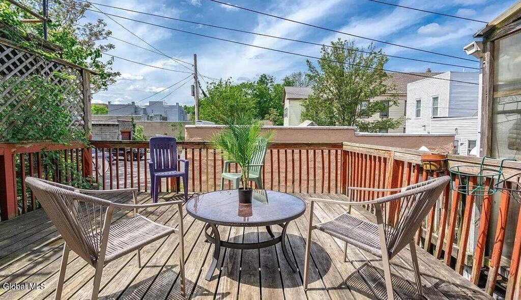 This Beautiful 3 story brownstone in the heart of Albany is a historic gem waiting for you! The soaring ceilings and original hardwoods in the charming yet spacious living room and dining room invite you to the classic elegance of times past,while enjoying the modern conveniences of today! Primary bedroom has a custom walk in closet,main level features an eat in kitchen leading to your back deck,a perfect spot for savoring your morning coffee. Lower level has a separate entrance,large living space,full bath,and W/D hookup,allowing for possibility of an income producing property or a 3rd bedroom. Newer rubber roof and centrally located: 3 minutes to Albany Med,Albany Law,Albany Medical College,5 mins to NYS Capitol and St. Peter's,and 10 mins to SUNY Albany MLS ID 202615983