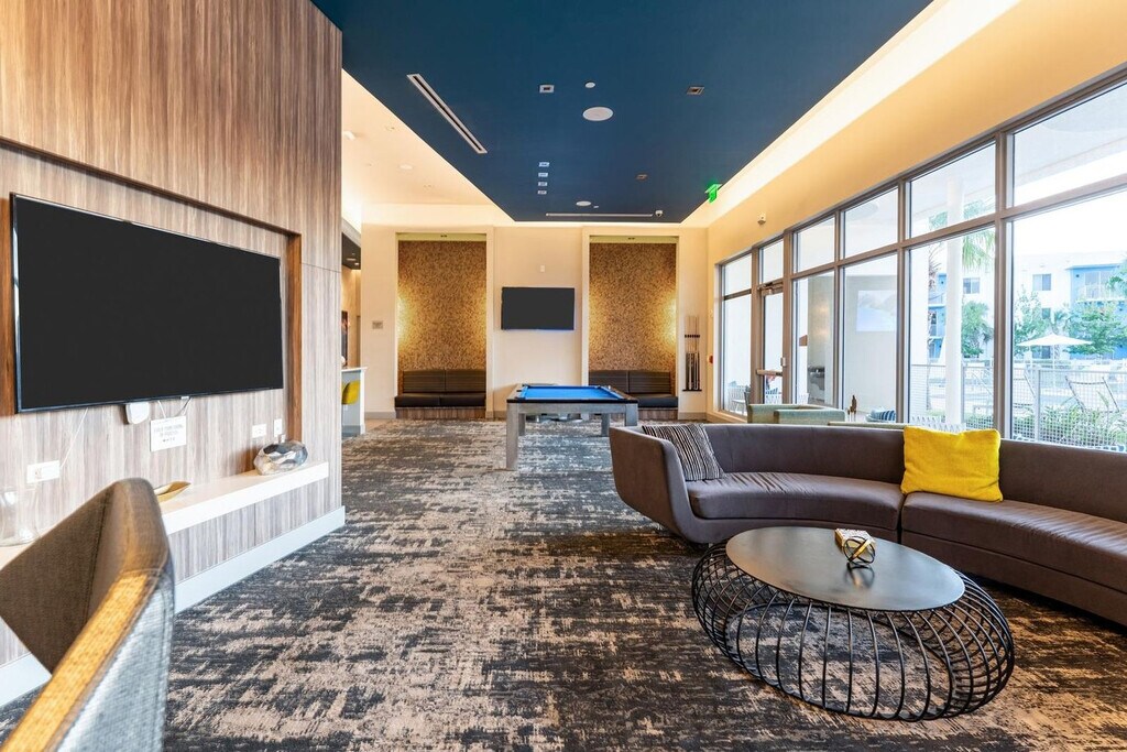 Feel at home in this modern 3-bedroom, 2-bathroom apartment in the heart of Daytona Beach. This spacious 1,483 sq ft apartment is just steps from One Daytona, the Speedway, and the beaches. This apartment features an open-concept living and dining area, central AC and heat, a smart TV, Wi-Fi, and a coffee maker. The fully equipped kitchen includes granite countertops and stainless steel appliances. Pets are welcome (non-aggressive breeds only) with a pet fee. One parking space is available per reservation on a first-come, first-served basis. Located minutes from Daytona International Speedway and the One Daytona shopping and dining district, this apartment offers easy access to Daytona Lagoon, the Boardwalk, the beach, jet skiing, ziplining, fishing, mini golf, and nightlife. Parties are fully prohibited. Quiet time is from 10 PM to 6 AM. There is a $300 penalty for smoking on the property, and you will be dismissed from your rental without a refund. There is a $250 penalty if the noise level or other obscene behavior requires a police callout, and you will be dismissed from the property without a refund. There is a $100 penalty for leaving trash outside the entrance to your property. Once your trash cans are full, please deposit trash in the large trash cans located at the building entrance. Please do not throw trash or paper towels in the toilet to avoid clogging. On checkout, please turn off the lights, the AC unit, water, and gas/stove, and lock the door behind you. Perfect for remote work. Includes: Bedroom 1: Queen bed Bedroom 2: Two twin beds Bedroom 3: Twin bunk bed 2 full bathrooms, including a soaking tub and walk-in shower Community Amenities Guests have access to a wide range of amenities, including: Resort-style pool with cabanas Fitness center and movie theater Clubhouse with pool table and conference room Outdoor kitchen with grills Basketball court and dog park Walking path with illuminated fountain views Self check-in via secure electronic lock Gated community with entry code [SI]