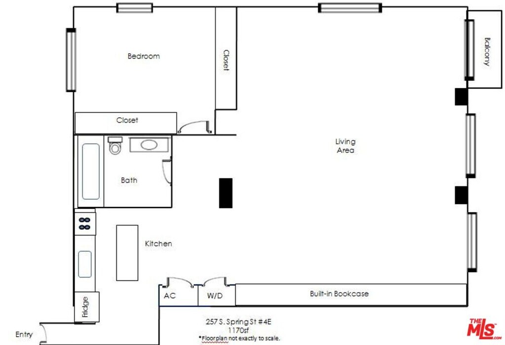 Spacious, nearly 1200sf 1 Bedroom urban loft with UNDERGROUND GARAGE PARKING INCLUDED! This unique corner LIVE/WORK loft in the historic Douglas Building features 1 fully enclosed bedroom and 1 bathroom. The massive open plan living area offers NYC loft vibes, with exposed brick details, tall ceilings, vintage wood floors, fire escape balcony (decorative), and oversized windows that bring in tons of light from every angle. The flex layout features a dramatic custom bookcase with library ladder for tons of storage, and there are additional custom built-ins throughout. Charming brick details in the bedroom are complemented by two large closet with built-ins. The kitchen features Poggen Pohl cabinetry and stainless steel appliances, and a spacious kitchen island offers more storage. The open plan dining and living area makes it easy to entertain while enjoying city views from every window. There is a powerful central heat and AC unit, a stacked W/D in the hall closet, and the loft comes with 1 RARE ASSIGNED UNDERGROUND GARAGE PARKING SPACE in the building, with additional guest spaces available in the attached lot. Rent includes water and trash and 1 parking space. The incredible location is just a few blocks from the Little Tokyo and Arts District, The Broad, Grand Central Market, Arts District, Financial District, Whole Foods, Walt Disney Concert Hall, The Broad Museum, MOCA, Spring Arcade, the iconic Bradbury Building with the exclusive Neuehouse members club, Dorothy Chandler Pavilion, the Frank Gehry-designed The Grand LA, Conrad Hotel, the new Metro regional connector line, and so much more. MLS# 25623777