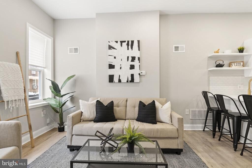 2571 Coral St. High ceilings throughout the main level set the tone for this beautifully remodeled 4-bedroom, 2.5-bath home located in the heart of East Kensington. Thoughtfully updated from top to bottom, this three-story property blends modern finishes with functional design. The main level features an open living and kitchen, with stainless steel appliances, a breakfast bar and custom cabinetry. Toward the rear, you'll find the dining room just off the kitchen allowing for a more intimate setting for dinner parties and a mudroom with convenient first-floor laundry in addition a powder room is also included on this level, perfect for everyday living. Upstairs, the second level offers three spacious bedrooms and a full hall bath, while the entire third floor is dedicated to a private primary suite complete with a large bedroom and a spa-inspired ensuite bath. The home also features a brand-new dual-zone HVAC system, updated plumbing and electrical systems, and all new windows for energy efficiency and peace of mind. Step outside to a fenced rear patio, ideal for grilling, relaxing, or entertaining. Located just blocks from some of the neighborhood’s favorite hot spots—including, Fiore, Francos Pizza, one of the city’s top pizza destinations; Rowhome Coffee; and the cozy local hangout Philadelphia Brewing Company, this home is perfectly positioned for enjoying all that East Kensington and nearby Fishtown have to offer. Whether you're seeking walkable dining, vibrant community energy, or easy access to public transit, this move-in ready home delivers on every level.