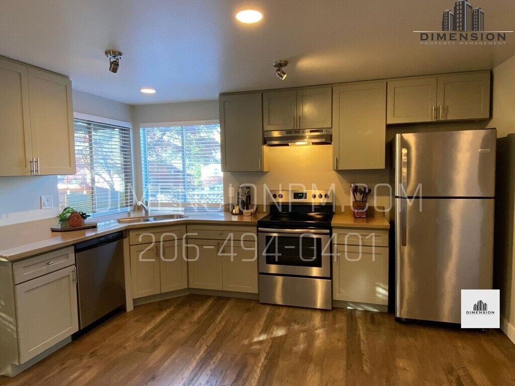 Schedule your self tour today! Welcome to this charming 3-bedroom, 2-bathroom rambler located in the desirable area of Kent, WA. This corner lot property is nestled in a cul de sac, providing a sense of privacy and exclusivity. The home boasts a cozy fireplace, perfect for those chilly evenings, and an attached garage for your convenience. The kitchen is a chef's dream with its quartz counters and shaker cabinets, offering a modern yet timeless aesthetic. The home also features washer/dryer hookups for your laundry needs. The hardwood floors throughout the house add a touch of elegance and are easy to maintain. This home is a perfect blend of comfort and style, waiting for you to make it your own. Virtually Staged