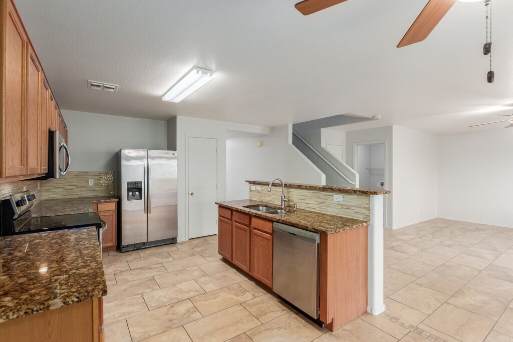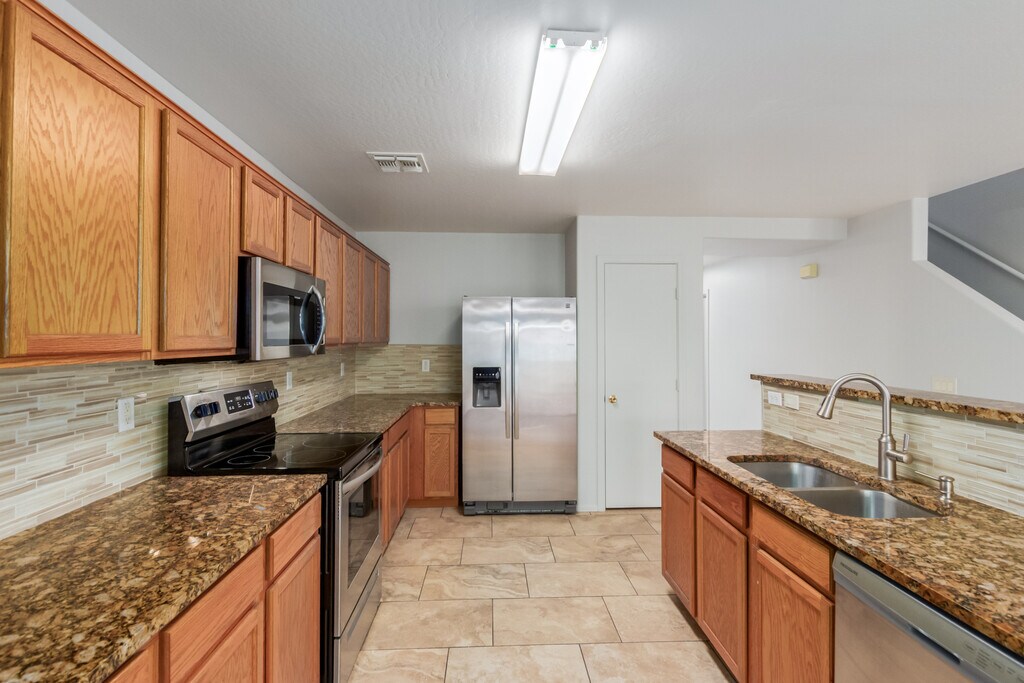 Welcome to this beautiful two-story home located in a desirable and well-maintained community. Residents enjoy access to outstanding amenities, including a clubhouse, swimming pool, basketball court, and a shaded playground—perfect for both relaxation and recreation. The home has been thoughtfully updated with fresh interior and exterior paint, brand-new carpet, and new bathroom fixtures, offering a clean, modern, and move-in-ready living space. The kitchen is equipped with stainless steel appliances, and the home includes WASHER and DRYER HOOKUPS ONLY. Additional features include a Ring doorbell and an interior security camera, both ready to be set up by the new resident for added convenience and peace of mind. This home offers a great combination of modern updates, functionality, and community amenities—an excellent place to call home.