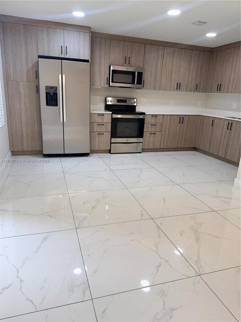 Stunning Newly Built Townhome with Rooftop Deck. Step into modern living with this beautifully designed home featuring 3 bedrooms and 2.5 bathrooms. Built with a concrete structure and impact-resistant windows doors, it combines elegance and peace of mind. The open kitchen showcases stainless steel appliances, quartz countertops, and sleek wood cabinetry, perfect for entertaining. Enjoy porcelain tile floors throughout. The master suite offers a walk-in closet, private balcony, and washer/dryer, plus a tankless water heater and modern finishes. Relax on the rooftop deck with sky views, ideal for outdoor living. Conveniently located near the Turnpike and US1 for easy access to shopping, dining, and more. Move in quickly with no long wait times just one month’s rent and one security deposit