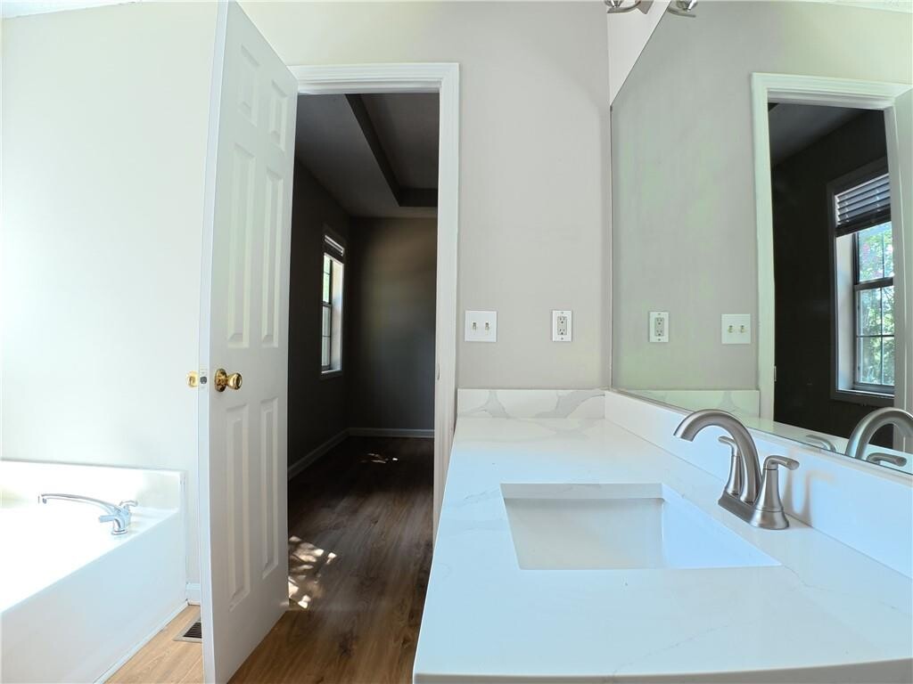 Quiet Community,4 bedroom and 3 full baths,Deck looking back large backyard,No carpet in the house,Kitchen with sunny breakfast area features Quartz countertops,Wood cabinets,Refrigerator,Laundry room with Washer and Dryer,Master with Garden Tub & separate Shower. Large Family room with FirePlace,Separate Dining room,2 Car garage with garage door opener. Private fenced Backyard.