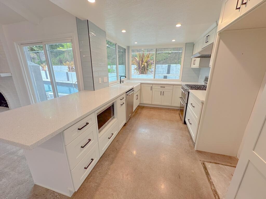 This stunning 1700 square foot house offers 4 bedrooms and 2 bathrooms with a single story, ranch style layout, perfect for anyone looking for a spacious and comfortable living space. Immaculately maintained, this home has a clean, modern design from the private and spacious courtyard to the resort like pool spa. The remodeled kitchen features upgraded appliances, including a gas range with double oven, dishwasher and plenty of counter space on an open peninsula. You'll love the updated touches throughout the home, such as dual pane windows and doors, scraped ceilings, LVP and polished concrete flooring. The hall and primary bathrooms have also been beautifully remodeled. The pool and spa provide the perfect spot for relaxation and entertainment, while the solar system helps to keep energy costs in check. Centrally located to shopping, dining, schools and transportation. Contact us today to schedule a showing.