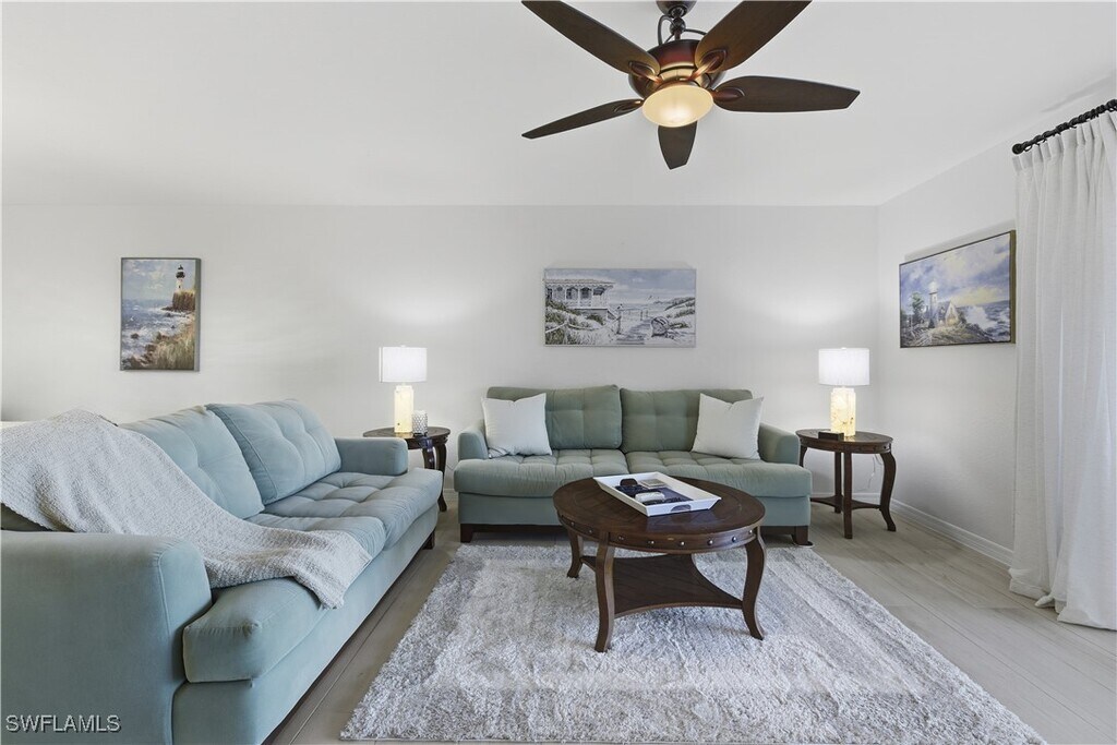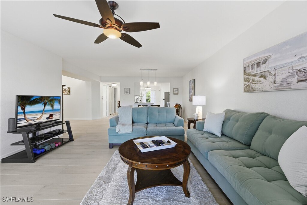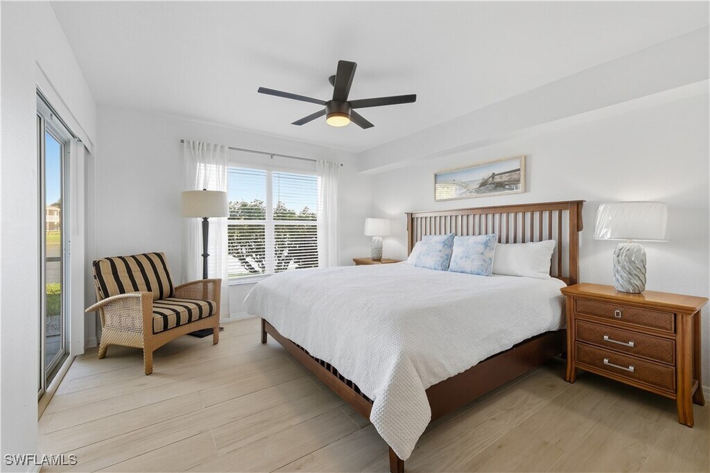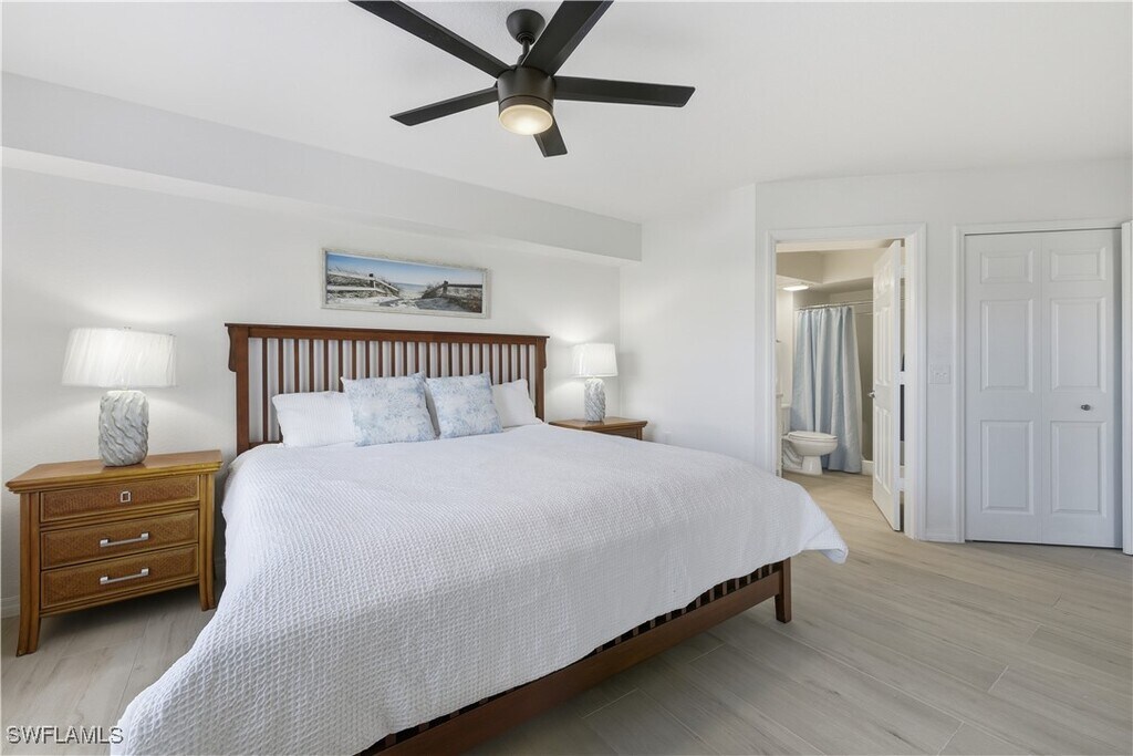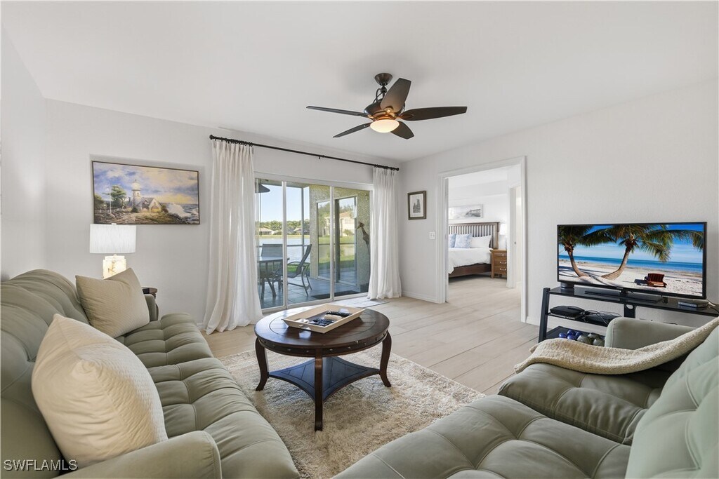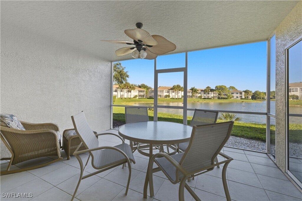 Stunning 1st floor lake front unit. This unit has been completely renovated features 2 bedrooms plus open den and open spacious floor plan. The unit has tile flooring throughout and upgrading lighting and fans. The fully equipped kitchen with shaker style cabinets,granite countertops,coffee bar and new appliances. There is a king bed in primary suite with walk-in closet and ensuite bathroom with shower only. Guest suite has a queen bed and next to guest bathroom. Open den features desk and sitting area. Open concept floor plan has dining room table for 6,living areat with sofa,loveseat and TV. The lanai has relaxing view of the lake with water feature. Bermuda Park features 2 community pools,hot tub,clubhouse with social activities,and tennis. Located near beautiful gulf beaches,Shopping,dining and Entertainment.