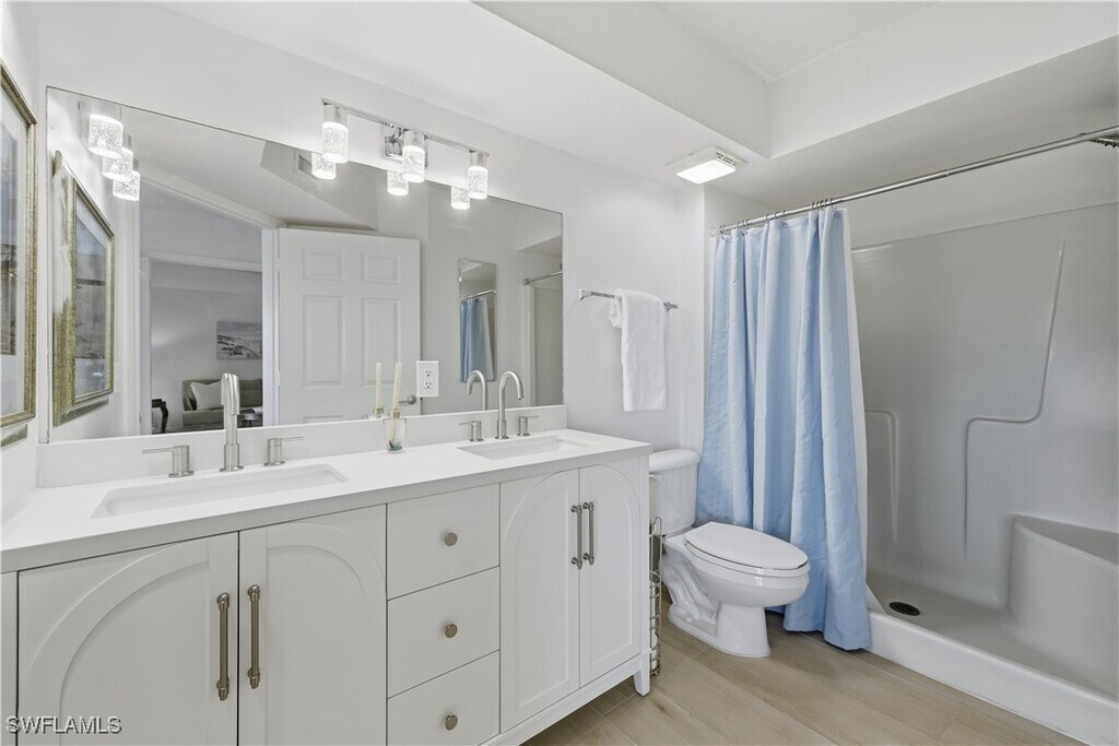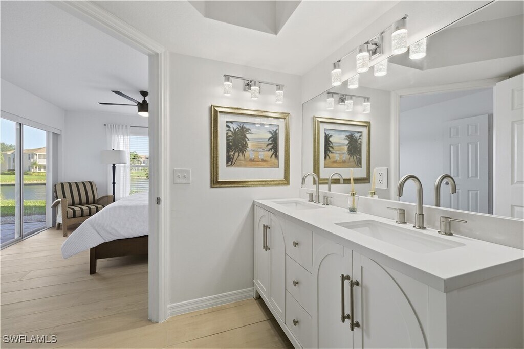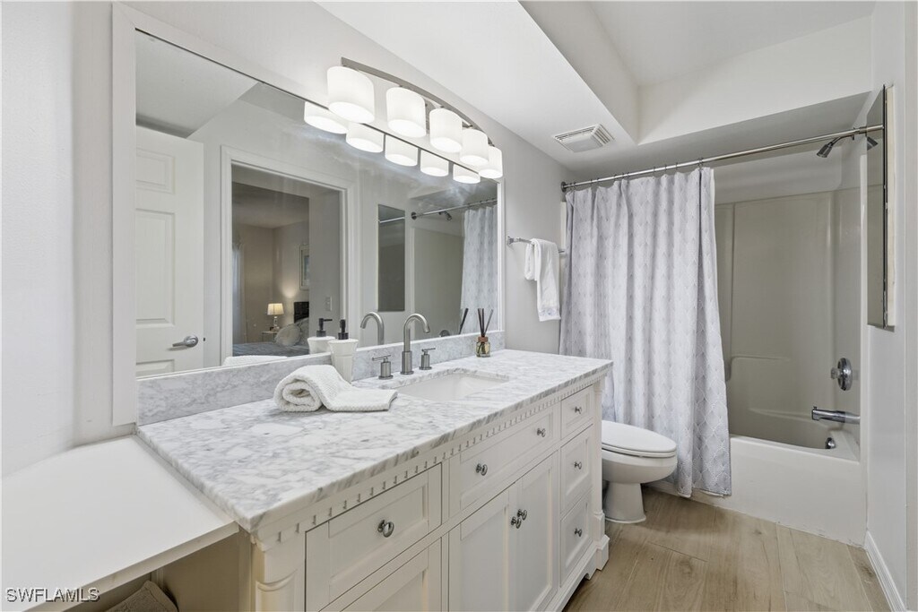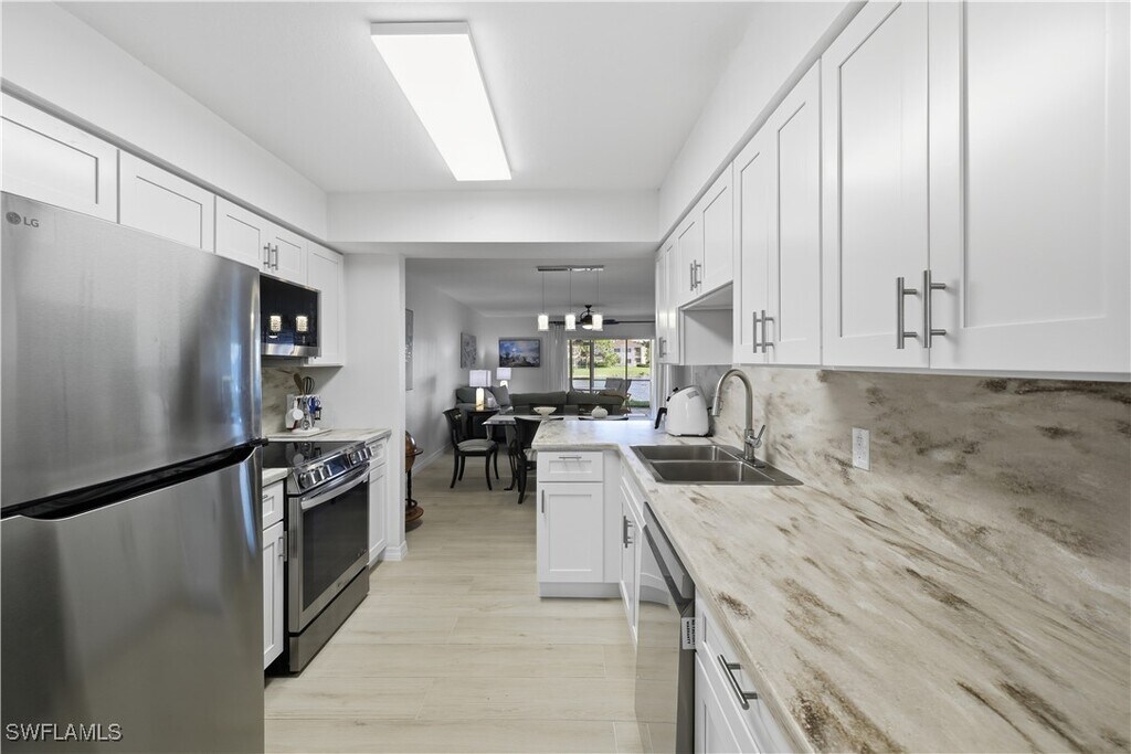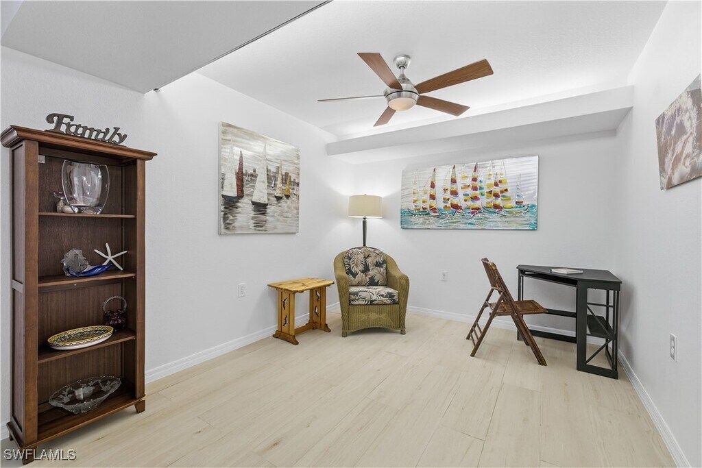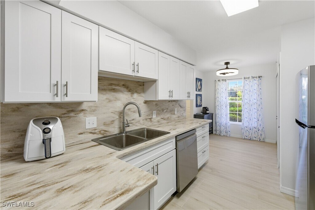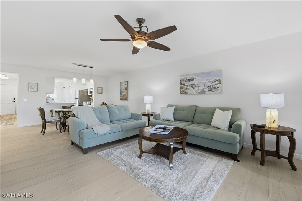 Stunning 1st floor lake front unit. This unit has been completely renovated features 2 bedrooms plus open den and open spacious floor plan. The unit has tile flooring throughout and upgrading lighting and fans. The fully equipped kitchen with shaker style cabinets,granite countertops,coffee bar and new appliances. There is a king bed in primary suite with walk-in closet and ensuite bathroom with shower only. Guest suite has a queen bed and next to guest bathroom. Open den features desk and sitting area. Open concept floor plan has dining room table for 6,living areat with sofa,loveseat and TV. The lanai has relaxing view of the lake with water feature. Bermuda Park features 2 community pools,hot tub,clubhouse with social activities,and tennis. Located near beautiful gulf beaches,Shopping,dining and Entertainment.