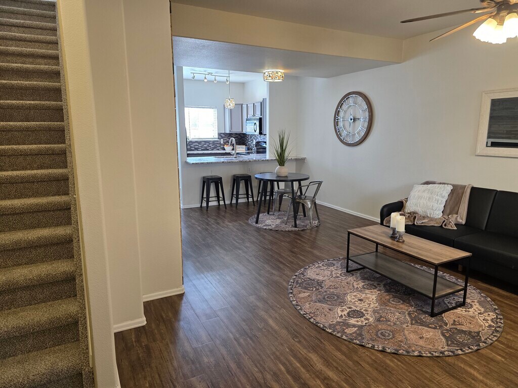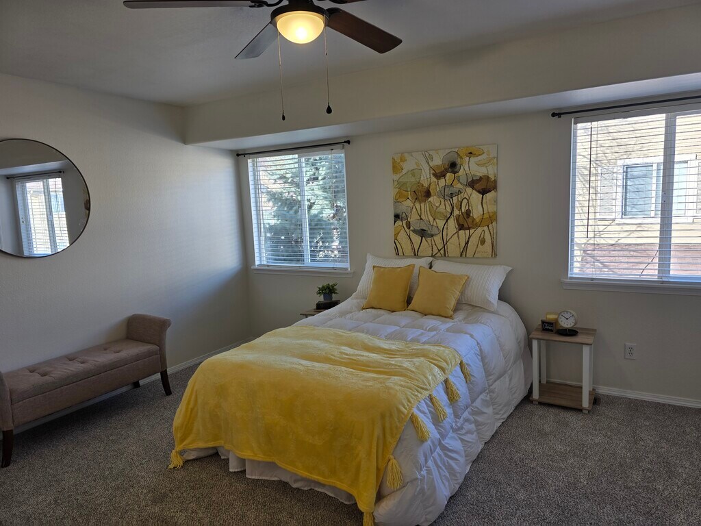 Available for immediate move-in! This well-designed residence combines comfort, convenience, and smart living spaces, perfect for anyone seeking both lifestyle and location. Step inside and experience an optimal “dual-master” floor plan – thoughtfully configured to offer two primary suites with private en-suite bathrooms and generous closet space. Ideal for multi-generational living, guests and possibly roommates. Downstairs you will find a 3rd bedroom, 3rd full bathroom and flex-space which ensures privacy and flexibility without sacrificing flow or style. Situated in the heart of Colorado Springs’ Powers corridor, you’ll enjoy effortless access to premier shopping, dining, entertainment and everyday conveniences just minutes from your front door. Nearby First and Main Town Center offers a vibrant mix of retail and restaurants, while local parks and open spaces provide scenic spots for recreation and relaxation. For military professionals, this location is a standout choice: Just minutes from Peterson Space Force Base and Schriever Space Force Base and a short drive to Fort Carson and the Air Force Academy. Additional Highlights include: reserved covered parking, modern finishes, cozy gas fireplace, HOA maintained grounds (included in rent), and in-unit laundry. Experience the perfect blend of functional layout, prime location and Colorado Springs lifestyle – where everyday feels like home.