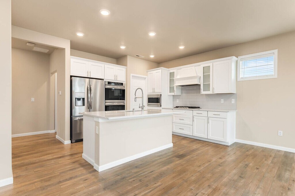 As you enter the home, you’re welcomed into a bright, open main living space designed for everyday functionality. The open floor plan connects the living area, dining space, and kitchen, with vaulted ceilings and large windows that allow natural light to flow throughout. The living area features a fireplace and sliding glass doors that open directly to the backyard, creating an easy indoor–outdoor connection. The kitchen sits at the heart of the main level and offers wood cabinetry, modern appliances, a spacious pantry, and a large island with an integrated sink, providing ample storage and workspace. This level also includes a dedicated office, offering flexibility for work or study. Upstairs, you’ll find four bedrooms along with a versatile bonus room suitable for a media room, library, or playroom. The primary bedroom is generously sized and includes an en-suite bathroom featuring dual sinks, a large mirror, and a tub and shower area. This level also includes a full secondary bathroom and a convenient laundry area with built-in storage cabinets, keeping daily routines organized and efficient. The backyard includes a gazebo and open outdoor space suitable for relaxing or entertaining. Located near everyday amenities, shopping, and dining, this home offers a well-balanced combination of open living areas, private spaces, and functional storage in a convenient setting. Nearby public transit options and walkable streets provide added convenience while still maintaining a residential setting. 12-month lease available; 16/17 month lease preferred. Required Resident Benefit Program for an additional $36.50 per month. Program details and benefits can be found at