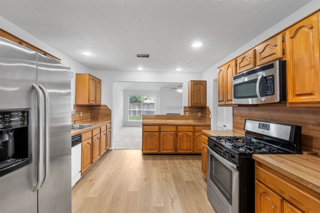 Beautifully maintained 3-bedroom,2-bath home with a private office/study,located in a desirable neighborhood with quick access to I-45,Hardy Tollway,and Grand Parkway (99). This spacious home offers an oversized living room with a cozy fireplace,a formal dining room for entertaining,and a light-filled kitchen with an eat-in breakfast area. The thoughtfully designed floor plan includes generously sized bedrooms,a split layout for privacy,and a versatile office space perfect for working from home or studying. Step outside to a huge,newly built screened-in back porch—ideal for relaxing,dining,or entertaining year-round. Additional highlights include a 2-car attached garage,a fully fenced backyard,and neutral finishes throughout. Refrigerator,washer,and dryer are included for added convenience. Located just minutes from shopping,dining,and major commuter routes,this move-in ready home offers comfort,space,and convenience all in one. MLS# 42825730