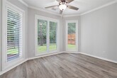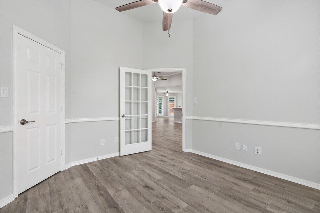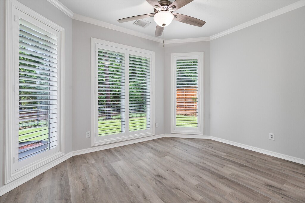 Stunning,custom,single-story home in Champion Lake! All-brick exterior,roof replaced in 2022,Double-pane windows & shutters 12/15. FOUR bedrooms & 3 full baths,& a split floor plan.Features include high ceilings,new high-quality flooring,extensive molding,Planation shutters & fresh neutral paint throughout,cozy gas log fireplace.Very open split floor plan ensuring a sense of spaciousness. Enjoy recessed lighting,a back door to the patio for early morning coffee,a luxury bath with jetted tub & separate walk-in shower offering double shower heads,a spacious walk-in closet equipped with built-ins. Covered back porch offers a delightful space to relax on rainy days or peaceful evenings. Private backyard backs to 5 acres of MUD 19 undeveloped land.Conveniently close to The Woodlands,providing balance of tranquility & accessibility. This home offers a blend of charm,comfort,& modern updates,enjoy a serene,upscale lifestyle. The Home,curb & gutters have NEVER FLOODED MLS# 57305822