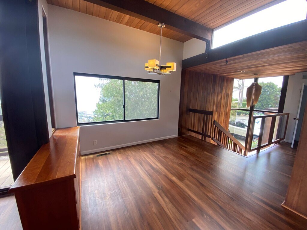 Laguna Beach 4 Bedrooms 2 Bathrooms. This amazing Home in the hills of Laguna Beach has it all! Grand entry way with statement chandelier. High ceilings and plenty of large windows for natural light. The home has hardwood floors through out. The upstairs features a large kitchen with stainless steel appliances, and granite counter tops. plenty of cabinet space and a large breakfast island. The living area opens up to a wrap around deck with the most amazing views of the ocean (Victoria Beach) as well as canyon views. The living room also features a cozy fireplace perfect for relaxing and unwinding after a full day at the beach. Downstairs you will find a grand master bedroom with large sliding doors that open up to the deck where you can relax and gaze at the breathtaking ocean views, sit down and enjoy a cup of coffee, or sip on a glass of wine. This home has it all! it is spacious, open, and bright! Beautifully maintained and a great combination of modern charm as well as vintage flavor! Pets OK upon approval. Our office participates in the Pet Screening service. ALL APPLICANTS MUST COMPLETE A PROFILE EVEN IF THERE ARE NO PETS IN THE HOME. Utopia Management DRE 01197438