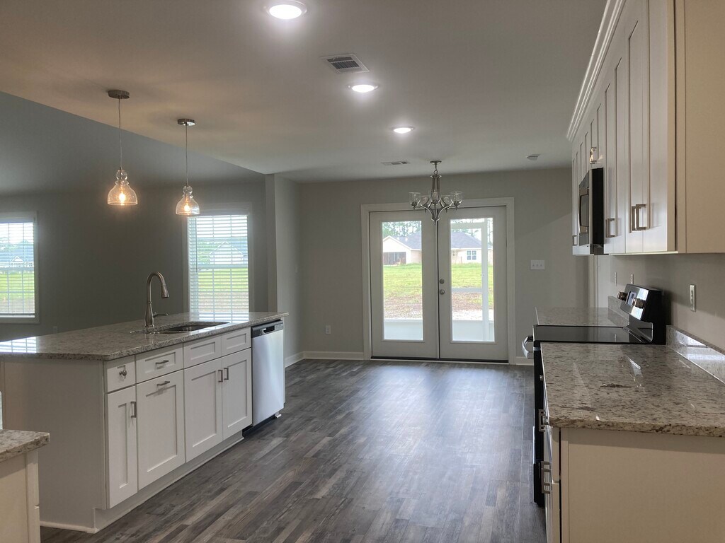 Practically new house in the new community of Laurel Run available for rent. Great commuting location. Only 1.5 mile from highway 75 (Exit 11), corner quarter of an acre lot. Just 3 miles from the Valdosta airport. Open floor plan, 4 bedrooms with double closets, 2 full baths, big kitchen with pantry closet, grand living space area, luxury plank floors throughout, granite counters and stainless steel appliances, laundry room, screened patio in back, recessed lighting all over the house. Master bedroom has cuff ceiling, walk-in closet, walk-in shower, bathtub, 2 separate sinks with granite counters and pocket door toilet room. The back yard will be fenced shortly. Come to see it - you will love it.