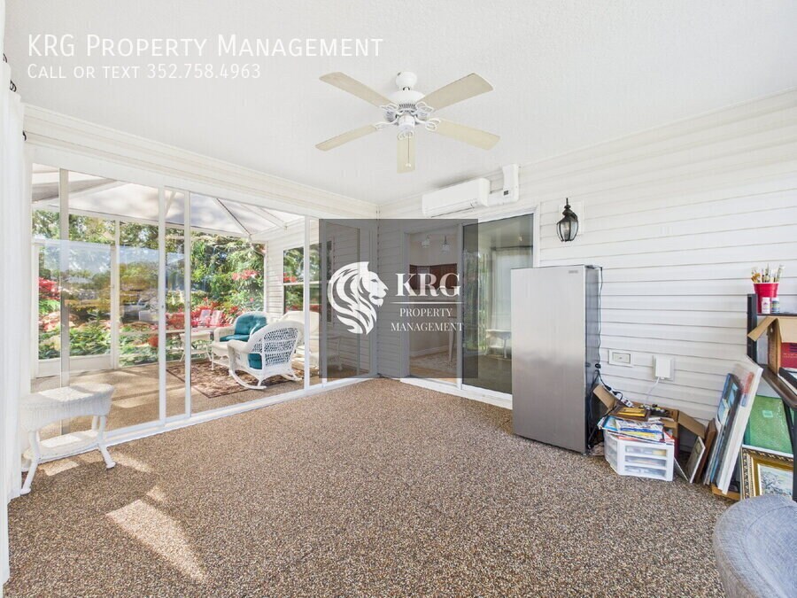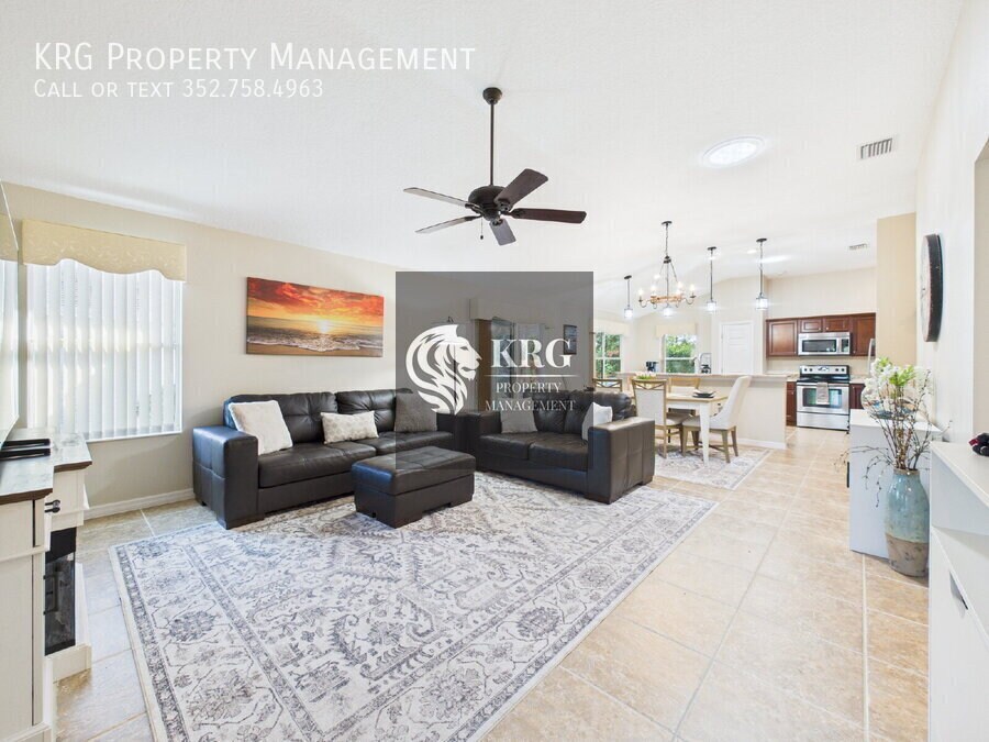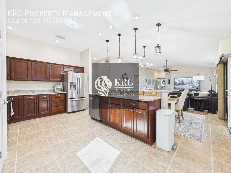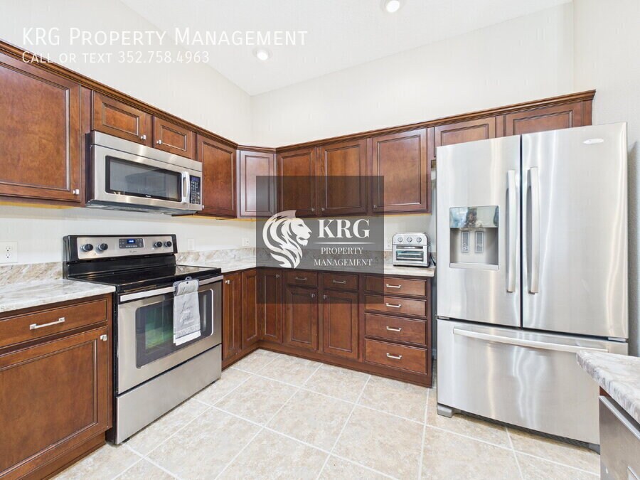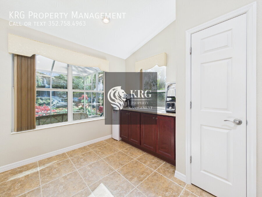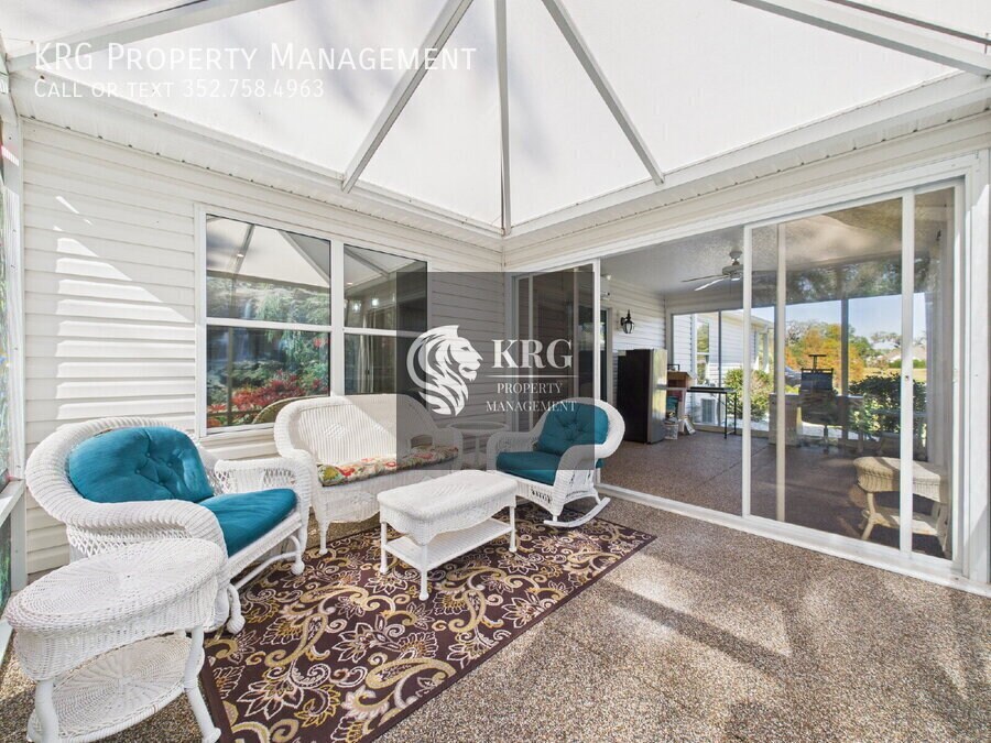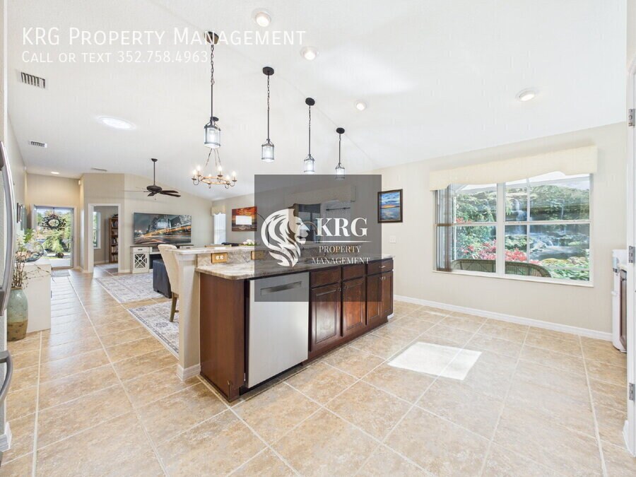 Step into your dream home in Tamarind Grove, The Villages! This 3-bedroom, 2-bath home offers bright, open living, a sunroom with peaceful pond views, and a private backyard with no rear neighbors. Cook and entertain in the modern kitchen with stainless steel appliances, granite counters, and a custom coffee bar. Relax in the master suite with vaulted ceilings, walk-in closet, and spa-like walk-in shower. Enjoy upgrades galore: new roof & gutters, new AC/heat (2025), freshly painted, professionally cleaned tile floors, and an extra-large garage with EV charging port. Community Perks: Heated pools, recreation centers, golf, fishing, and easy access to shopping, dining, and Village Squares—all golf cart friendly! Bonus: Comes with a NEW electric 4-seater golf cart with sound/light bar and back-up camera. Schedule your showing today! The property will be move-in ready on January 18th, 2026 (not immediately available) and will be UNFURNISHED. As a company, we do business in accordance with the Federal Fair Housing Law and welcome Persons of all Race, Color, Religion, Sex, Handicap, Familial Status or National Origin.Dryer Electric Water Heater Laundry Room Restaurant Washer