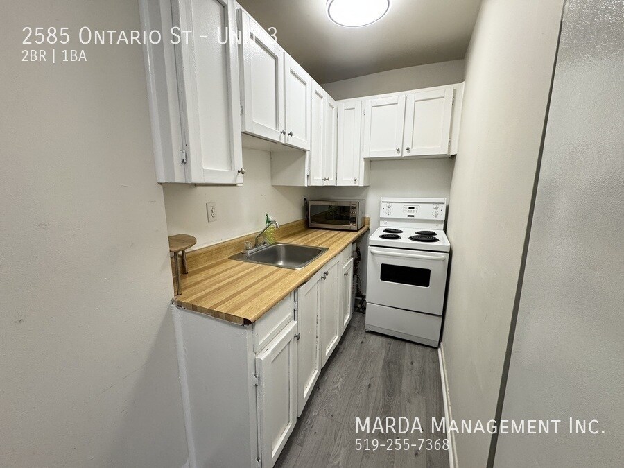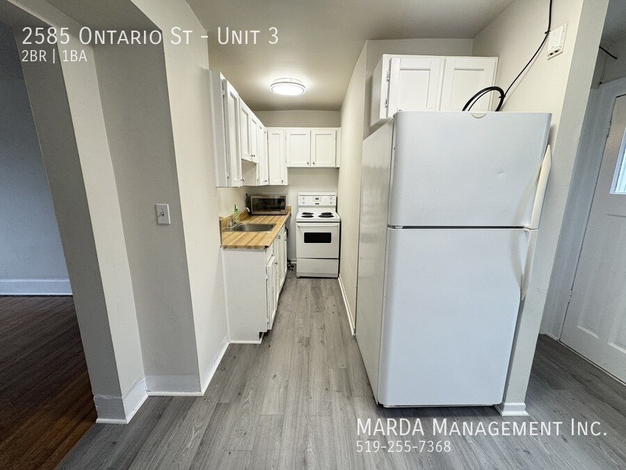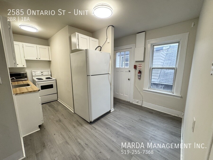 Welcome to 2585 Ontario Unit 3, a 2 bedroom, 1 bathroom second-floor unit located in the desirable Walkerville area, close to local shops, restaurants, parks, and neighbourhood amenities. This cozy unit features a comfortable living room area with hardwood flooring and plenty of natural light. The first bedroom is located off the living room and includes hardwood flooring and a decent-sized closet. The kitchen and dining area feature brand new laminate flooring and come equipped with a fridge and stove, offering a functional space for cooking and dining. The bathroom includes a tub/shower combo, vanity, and toilet. The second bedroom is located off the kitchen and also features hardwood flooring and a good-sized closet. Tenants are responsible for hydro and gas. Please note there is no laundry on the premises. One-year minimum lease. First and last months rent and a credit check are required. Professionally managed by MARDA Management, offering 24/7 maintenance support with a live agent and easy, convenient rent payment options. Call MARDA MANAGEMENT today at or email to schedule your viewing. Laminate Flooring No Smoking Allowed Pet Friendly