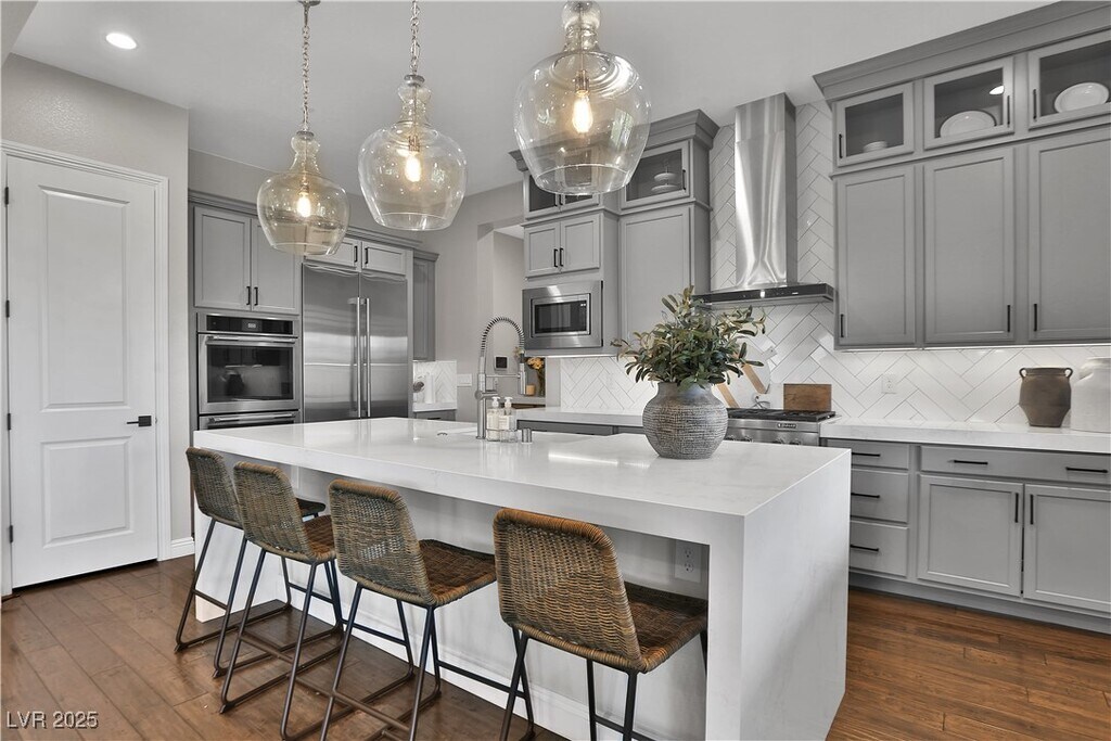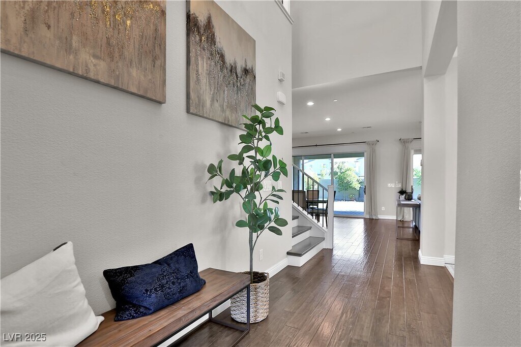 Located in the highly sought-after master-planned community of Inspirada, this spacious 4-bedroom, 3.5-bath single-family home offers over 3,000 square feet of beautifully designed living space. The main level showcases reengineered hardwood floors, a chef’s kitchen with a quartz waterfall island, 6-burner cooktop, double oven, butler’s pantry, and ample cabinetry — ideal for entertaining or family gatherings. Upstairs, a generous loft provides additional living space, and the laundry room features abundant additional storage. The primary suite offers a relaxing retreat with a walk-in shower, separate soaking tub, dual vanities, and a spacious walk-in closet. Enjoy outdoor living year-round in the covered, paved patio with a built-in kitchen complete with BBQ, refrigerator, and bar! Located in a vibrant community with multiple parks, dog parks, and a Toll Brothers community pool, this home is ideal for families seeking comfort, space, and an exceptional neighborhood lifestyle.