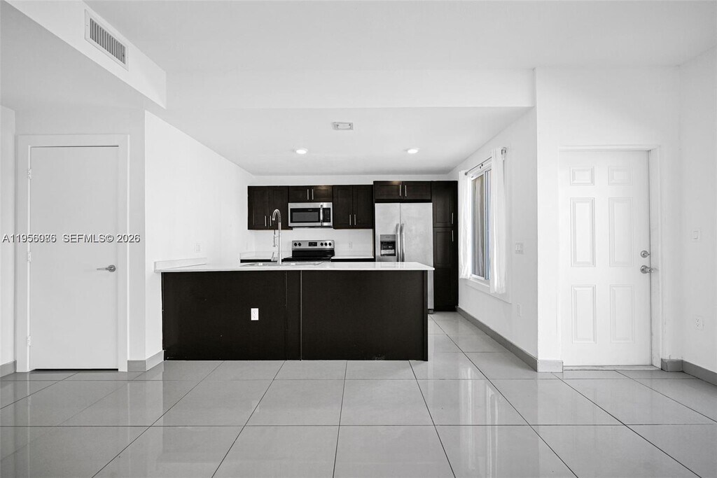 Beautifully designed modern townhome offering a bright open-concept layout filled with natural light and elegant porcelain tile flooring throughout the main living spaces. The contemporary kitchen features quartz countertops, rich wood cabinetry, stainless steel appliances, and a spacious center island ideal for everyday living and entertaining. Upstairs showcases comfortable bedrooms with wood-look flooring, stylish bathrooms with designer tile finishes, and private balconies that create a seamless indoor-outdoor experience. The expansive private rooftop terrace serves as a true retreat, perfect for relaxing evenings, weekend gatherings, or enjoying breathtaking South Florida sunsets. Built with concrete construction, impact windows and doors, and energy-efficient features, this home provides comfort, security, and peace of mind. Conveniently located near top schools, shopping, dining, and major highways with easy access to the Florida Keys, this residence delivers modern design, functionality, and an exceptional lifestyle in one of South Florida’s fastest-growing communities. MLS # A11956086