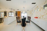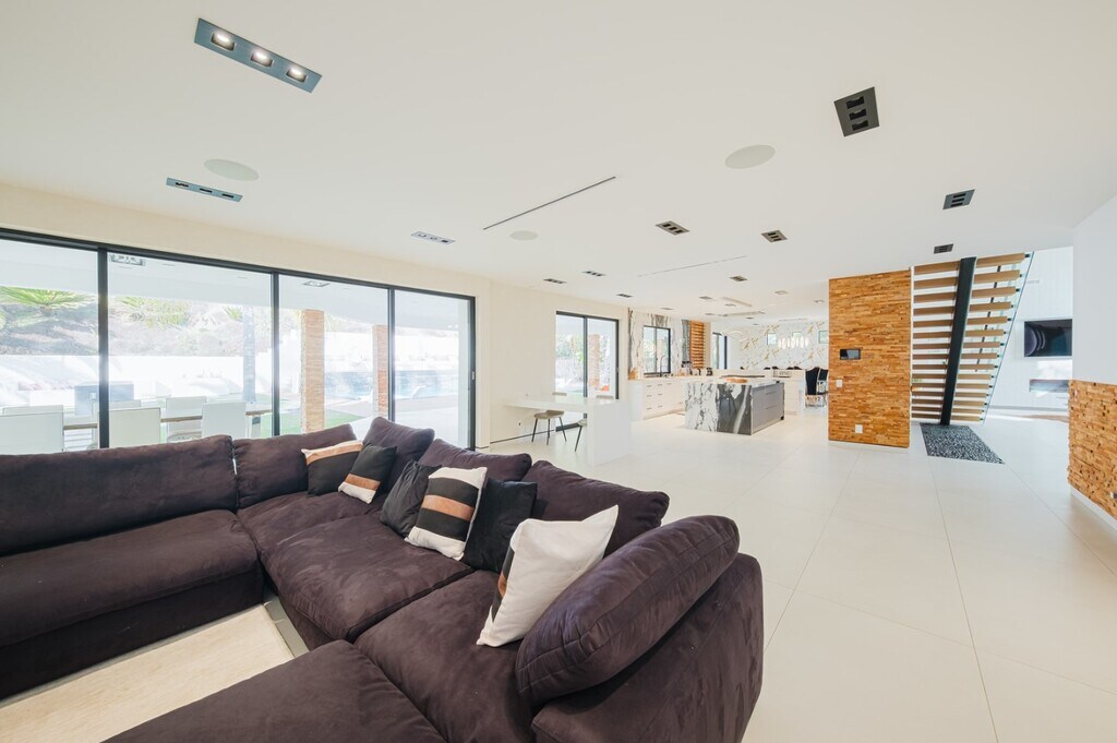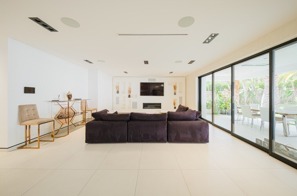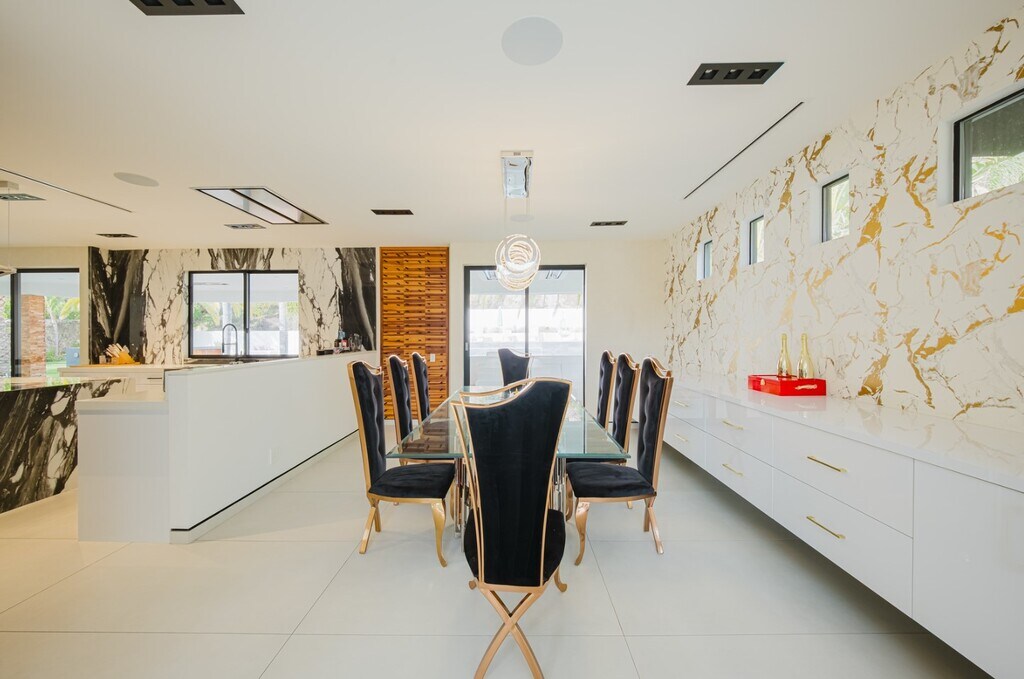 Nestled in a serene cul-de-sac within the prestigious guard-gated Mountain View Estates, this extraordinary contemporary smart home spans 4,800 square feet of meticulously designed living space. Recently renovated with no detail overlooked and no expense spared, it offers an entertainer’s dream environment where style and functionality merge seamlessly. Designed for an exceptional indoor/outdoor lifestyle, 18-foot Fleetwood pocket doors open to an expansive outdoor retreat, complete with a zero-edge pool, spa, and three cascading waterfalls. The private oasis features beautiful wood decks, majestic king palms, a double-island outdoor kitchen, fire pit, and an immersive, amphitheater-quality sound system. The grand primary suite occupies the entire rear section of the home and serves as a luxurious sanctuary. With a floating steel staircase, Italian porcelain floors, reclaimed wood accent walls, and custom 3-gang LED fixtures, this space exudes sophistication and tranquility. The suite also includes a cozy lounge area, a fireplace, spacious walk-in closets, and opulent rose gold hardware and fixtures. For the culinary enthusiast, the chef’s kitchen is a masterpiece, boasting high-end Miele appliances, custom glass cabinetry, and a striking butcher block center island. This residence exemplifies modern luxury, offering an unmatched combination of contemporary style, cutting-edge technology, and extraordinary outdoor living spaces.