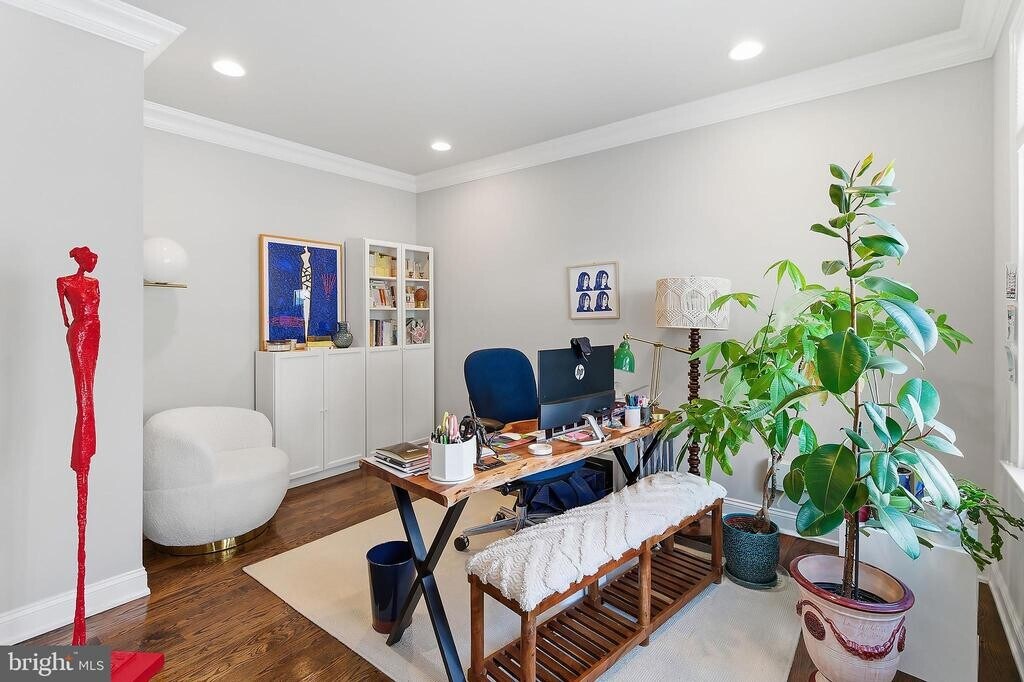 This exceptional two-story home offers 4 bedrooms, 4.5 bathrooms, and a 2-car garage with finished basement. It perfects for families seeking luxury and comfort. Elegant Dining Room with stunning coffered ceiling for memorable entertaining. Versatile Living Room with French doors ideal as a home office or private study. Gourmet Eat-In Kitchen with center island and granite countertops. Family Room is with coffered ceiling, cozy fireplace, built-in surround sound system, and its sliding door access to private fenced backyard. The convenient Mud Room is with coat closet and additional storage cabinets. Luxury Laundry Room equipped with granite countertop sink and high-performance LG washer/dryer. Master Suite featuring sitting area, two oversized walk-in closets, and spa-like marble bathroom with relaxing Whirlpool tub. Three Additional Bedrooms providing flexible space for family, guests, or home office needs. Four Full Bathrooms for convenience and comfort. Beautiful hardwood floors throughout. Energy-efficient two-zone HVAC system for optimal comfort and utility savings. Finished basement is for recreation, storage, or additional living space. This stunning home is ideally situated with easy access to shopping, top-rated schools, and vibrant downtown attractions.