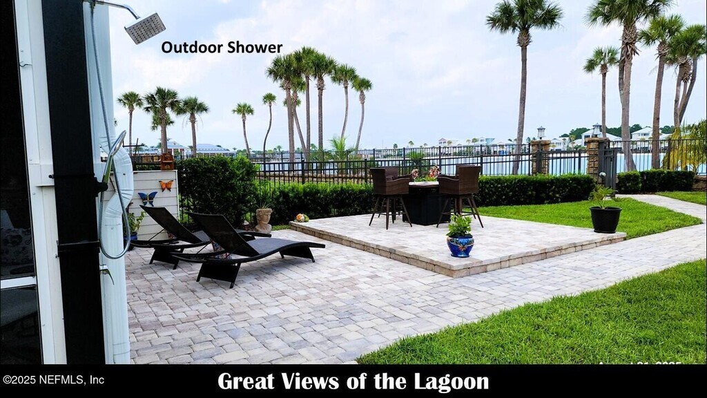 UNBEATABLE VALUE IN BEACHWALK - LAGOON LIVING AT ITS FINEST! Welcome to your personal slice of paradise in the heart of Beachwalk,where resort-style living meets everyday comfort. This beautifully upgraded 3-bedroom,2½ bath home with bonus flex space offers direct backyard access to the breathtaking 14-acre Crystal Lagoonperfect for swimming,paddleboarding,kayaking,or simply strolling along the white sandy shores. STYLISH INTERIORS & THOUGHTFUL UPGRADES. Step inside to a spacious living area featuring a custom rock accent wall,electric fireplace with adjustable color and heat settings,and an 85' Samsung TV with soundbar that conveys. The leaded glass front door and sidelight add elegance,while tongue-and-groove ceilings on the entry,lanai,and balcony create a warm coastal vibe. Outdoor kitchen,balcony swing,outdoor shower,and audio/visual doorbell round out the luxe touches. Most overhead lighting has nightlight/mood setting. CHEF'S KITCHEN & ENTERTAINER'S DREAM. The kitchen boasts quartz countertops,a super-quiet dishwasher,new pendant lighting,under-cabinet illumination,instant hot water,a 5-burner gas cooktop,and walk-in pantry. The spacious dining area features plantation shutters and a striking new light fixture,plus a dry bar. WAKE UP TO WATERFRONT SUNRISES. Enjoy morning coffee on your private balcony swing while soaking in stunning sunrise views. Spend your days lounging by the lagoon,sliding into fun at the waterslides,sipping cocktails at the swim-up bar,or practicing your swing on the putting green beside the six Har-Tru tennis/pickleball courts. Even your furry friend gets in on the fun at the Dog Splash Park! CHEF'S KITCHEN & ENTERTAINER'S DREAM. The kitchen boasts quartz countertops,a super-quiet dishwasher,new pendant lighting,under-cabinet illumination,instant hot water,a 5-burner gas cooktop,and walk-in pantry. The spacious dining area features plantation shutters and a striking new light fixture,plus a dry bar. COMFORT MEETS FUNCTIONALITY. The owner's suite offers blackout drapes for restful nights and a private balcony for sunrise and lagoon views. The spa-like bath includes a large walk-in shower,dual vanities,makeup station,and generous walk-in closet. Bedrooms 2 and 3 each have private sink/vanity areas with a shared water closet and tub/shower. This home includes a versatile flex space perfect for an office,playroom,gym,or craft room. Upstairs features upgraded carpet,while engineered flooring adds elegance downstairs. SMART & SECURE LIVING. The laundry room is fully equipped with new washer,dryer,sink,and cabinetry. Dimmable recessed lighting throughout creates ambiance,and the home is wired for a security system for peace of mind. OUTDOOR OASIS. The screened lanai features a granite-topped summer kitchen with Mont Alpi grill,sink,mural,tongue-and-groove finishes,and a 46" Roku TV that conveys. Step outside to a large fenced backyard with paver patioan entertainer's paradise with private lagoon access just steps away out your back gate. ALL exterior maintenance is covered by HOA dues COMMUNITY PERKS GALORE. Beachwalk's clubhouse offers a state-of-the-art fitness center,Kid's Club,full-service restaurant and bar,and a second swim-up bar right in the lagoon. Weekly entertainment and festive holiday events make this a vibrant,family-friendly community. FULLY FURNISHED OPTION AVAILABLE. Available with all furniture and window treatments except personal items,some artwork,and piano.