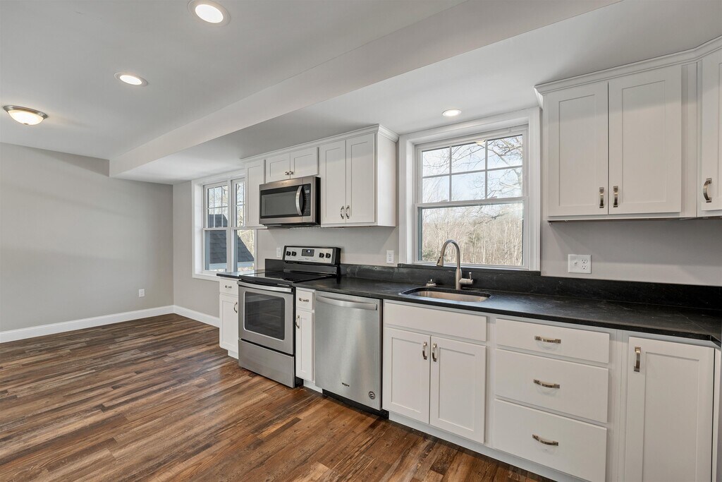 Welcome to 259 Stage Road, Unit 4 – where everyday comfort and unbeatable convenience come together seamlessly. This modern 2-bedroom, 1-bathroom rental offers effortless single-level living in a desirable location within the highly regarded Coe-Brown School District, with easy access to local schools, grocery stores, restaurants, scenic lakes, and major commuter routes that make daily life simple and efficient. Set on a picturesque 23-acre parcel with shared common land, the property provides a peaceful and private setting with expansive open space, offering a rare sense of tranquility for rental living. Just minutes from Route 4 and Route 156, commuting to Concord, Durham, UNH, Manchester, and surrounding areas is both quick and convenient. Inside, you’ll find a bright and airy open-concept layout designed for comfort and functionality, featuring an inviting eat-in kitchen with ample dining space and a generously sized living room perfect for relaxing or entertaining. The windows fill the home with natural light, enhancing the warm and welcoming feel throughout. Additional highlights include in-unit laundry hookups, a dedicated utility closet for extra storage, central A/C for year-round comfort, and two off-street parking spaces for added ease. Offering a low-maintenance lifestyle in a scenic setting, this rental is truly a standout opportunity. Tenants are responsible for utilities, and a 12-month lease is required. This is a non-smoking property with no pets permitted. A completed rental application, including a tenant-paid credit and background check, is required. Unit available April 1st. Showings to begin on April 6th by appointment only. MLS# 5081059