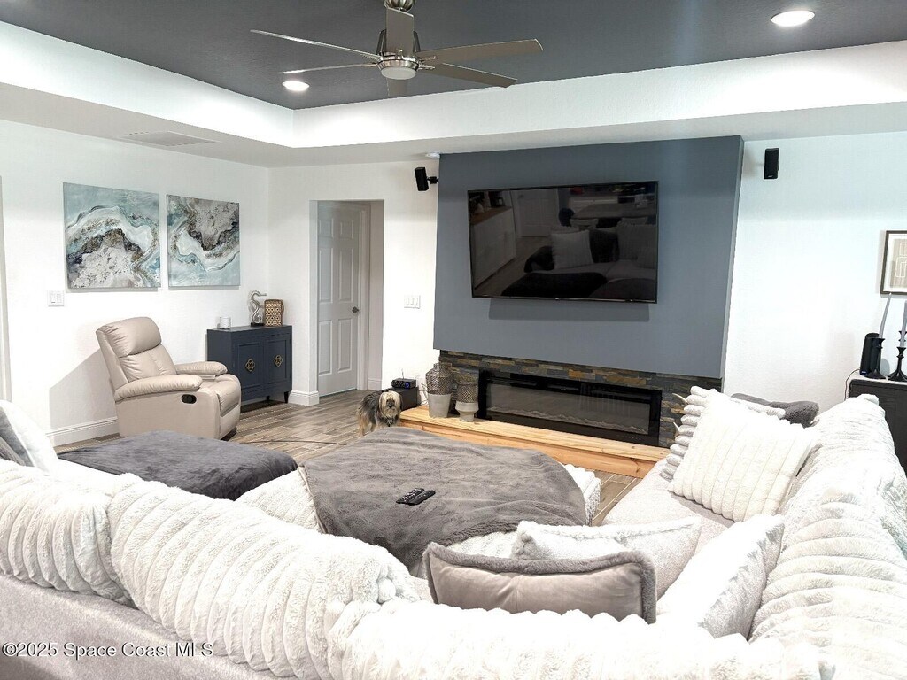 Welcome to this spacious and upgraded residence in SW Palm Bay. This beautiful 2022 home features 5 bedrooms and 2 full bathrooms. The 5th bedroom is smaller but features a built in closet and night stand. The open concept welcomes a gorgeous kitchen with stainless steel appliances and beautiful countertops. The fireplace located in the living room,gives this home the ultimate cozy feel. With double sinks in the main bathroom and custom closets for his and hers,this home is what you've been waiting for. Enjoy this conveniently located home in a quiet neighborhood,close to shoppings,schools,restaurants and mayor highways. Don't wait to come view this beautiful property! Property is also listed for sale! MLS # 1073942