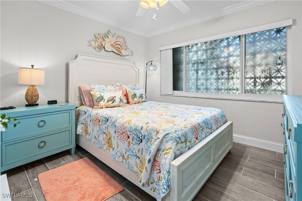 Welcome to your beach cottage at Casa Bonita Royale #107,just steps from the sugar sand of Bonita Beach,with deeded beach access right across the quiet,dead-end street. Nestled on Little Hickory Island,this corner end unit has bay views (watch for dolphins!),parking,storage,and a bayside pool. Inside,enjoy an open floor plan with tile floors,quartz counters,updated appliances with washer/dryer,impact windows and doors,custom tile baths,crown molding,and quality furniture included. The spacious master suite has a walk-in closet,peaceful bay views,and sliders to the lanai,the perfect spot to relax after a day kayaking,fishing,or soaking up the sun. Please note: the HOA requires a one-month minimum stay and paperwork can take up to 20 days for approval.