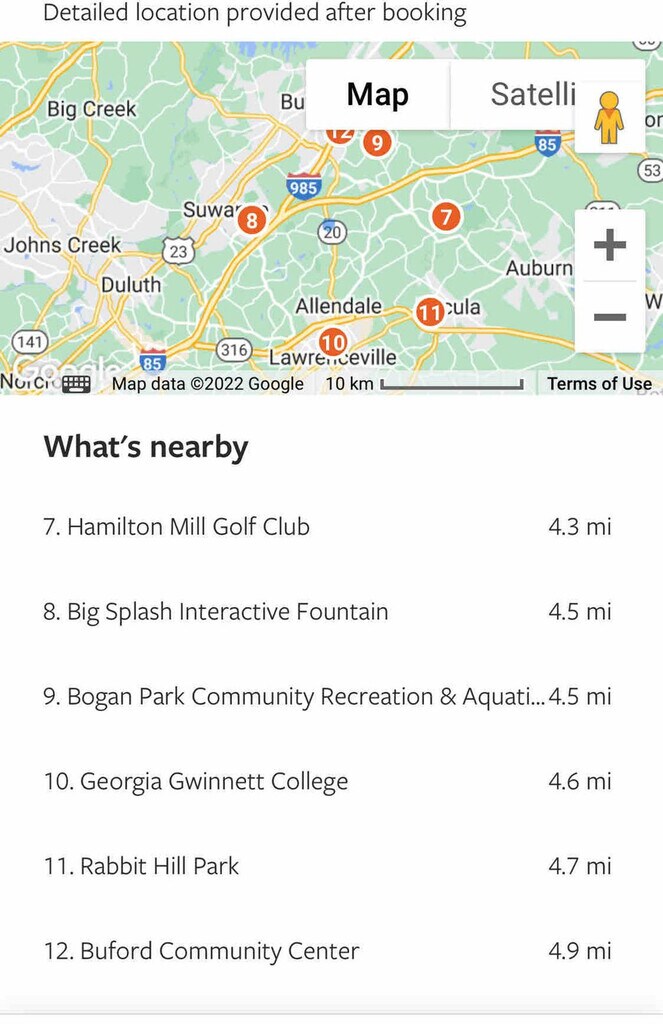 Welcome to this sweet hideaway in the heart of Buford! Feel at home in this spacious and unique cozy 3-bedroom, 2-bathroom home that is newly renovated with bright and modern decor. The living area features a comfortable couch and a 55-inch TV. The kitchen and dining area include a cozy dining table and chairs, a full-sized refrigerator, a microwave, an oven, and a coffee maker/kettle. While it may not be a fully equipped kitchen like your own home, it is equipped with basic kitchenware to prepare simple meals. The master bedroom offers a king-size bed, a full bathroom with a shower, and a walk-in closet. The first and second bedrooms each have a queen-size bed. Additional amenities include free Wi-Fi and an on-site washer and dryer. An extra queen air mattress is available on site, and a twin air mattress is available upon request for parties greater than eight people, with an additional fee. For those traveling with pets, small pets under 25 lbs may be approved with a nonrefundable pet fee of $150 per pet per stay, with a maximum of two pets allowed. Mid-stay cleaning services can be requested for an additional fee. This home is less than 5 minutes away from the Mall of Georgia, approximately 20 minutes from Lake Lanier, and 10 to 15 minutes from Gas South Arena. It is conveniently close to major highways. Check-in is at 4 p.m. and check-out is strictly at 10 a.m., with a penalty fee of half the night’s stay for late check-out. Smoking, including electronic cigarettes, is prohibited inside or outside within 10 feet of the property, with a $250 cleaning charge for violations. Loud noise, parties, or events are not allowed. The maximum capacity is 10 people, and unregistered guests will incur an additional charge of $50 per guest per night. The property is equipped with security cameras outside for added security. Parking is limited to four standard-size cars on the premises, with no overnight street parking allowed. Includes a desk and chair, providing a convenient working space for those who need to work remotely. Free Wi-Fi is available to ensure you stay connected during your stay. [SI]