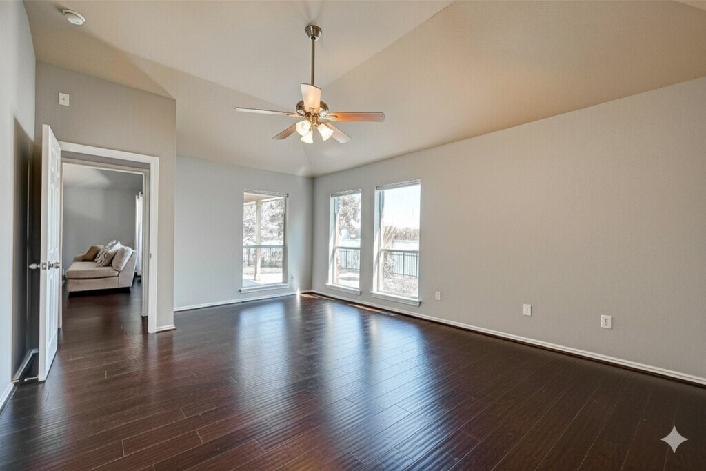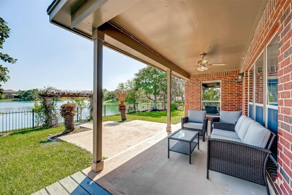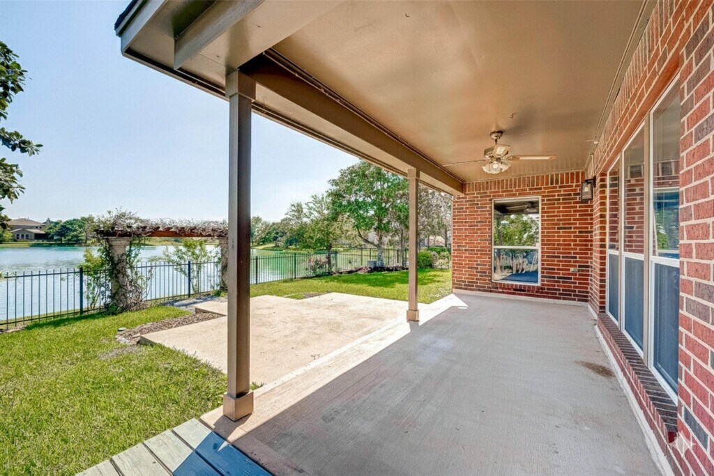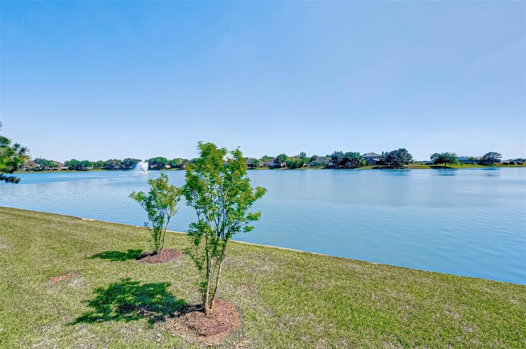 Welcome to a rare gem—this stunning one-story Perry Home offers breathtaking panoramic lake views right from your backyard. Designed for both comfort and elegance,the open-concept layout features fresh interior paint,soaring ceilings,and seamless wood & tile flooring throughout. The kitchen flows effortlessly into the breakfast area,showcasing granite countertops,a bar-style seating space,and room for a wine cooler—perfect for entertaining or slow mornings by the water. Elegant designer arches open the space to the living room,where wall-to-wall windows frame serene lake views and flood the home with natural light. The spacious primary suite is a true retreat,filled with sunlight and tranquility. The primary bath impresses with designer tilework,marble accents,a luxurious soaking tub,and a sleek frameless glass walk-in shower. A generous walk-in closet completes the experience. Just bring your furniture and start enjoying lakefront living at its finest. MLS# 16370353