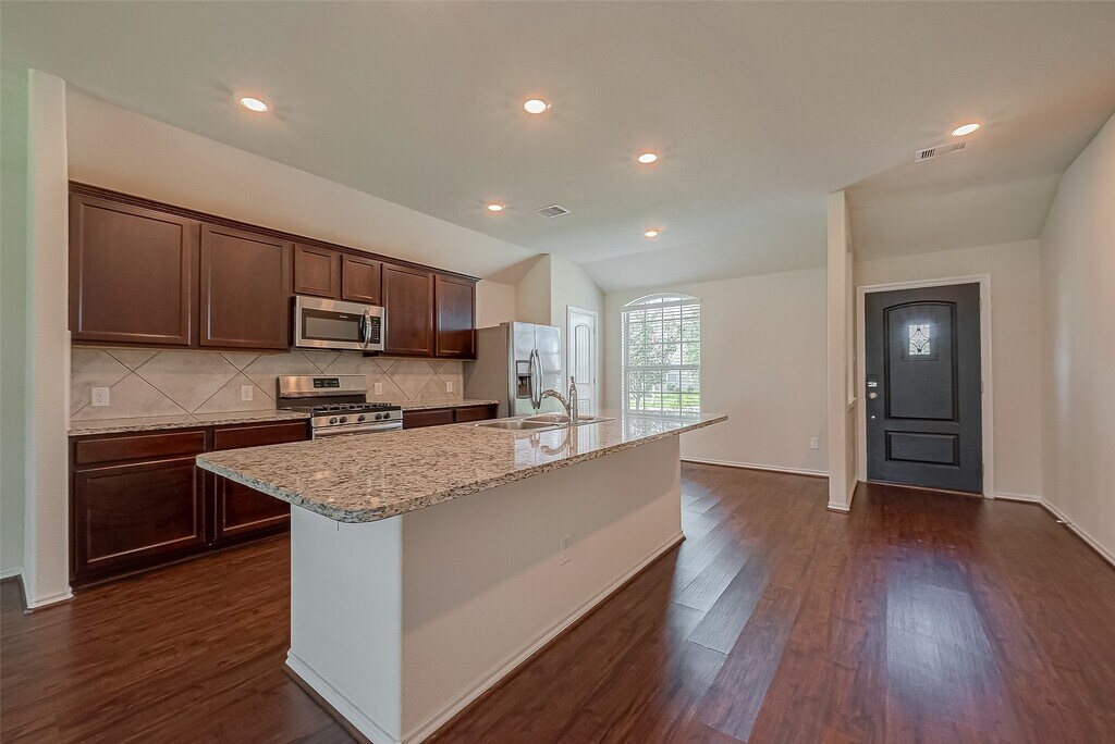 Welcome to your dream home in the heart of Katy! This stunning property boasts a beautiful stone and brick elevation,exuding luxury and timeless elegance. Inside,you'll find three spacious bedrooms and two well-appointed bathrooms. The luxury-inspired vinyl floors flow seamlessly throughout the open floor plan,creating an inviting and cohesive space for entertaining and everyday living. The gourmet kitchen features a large island bar,perfect for casual dining and social gatherings. The primary suite offers a serene retreat with a separate soaking tub and shower,providing a spa-like experience at home. One of the unique highlights of this home is the privacy it offers,with no backyard neighbors. Located in the highly acclaimed Katy ISD,this home is zoned to some of the top-rated schools in the area,ensuring a top-notch education for your family. Don’t miss the opportunity to make this luxurious,move-in-ready home yours! MLS# 88513341
