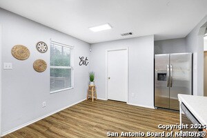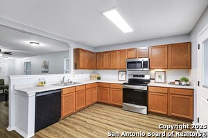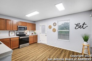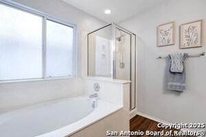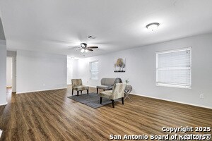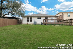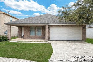 Welcome to this beautiful 3-bedroom, 2-bath, single-story home with a 2-car garage and an inviting open floor plan overlooking a peaceful greenbelt. From the charming front porch, step inside to expansive living and dining areas enhanced by stunning new luxury vinyl flooring. The kitchen and breakfast area flow seamlessly for easy everyday living, with the pantry and laundry room conveniently nearby. The split primary suite offers exceptional privacy and features a soaring trey ceiling, a spacious walk-in closet, and a dual vanity with a relaxing garden tub. Generously sized secondary bedrooms make this layout ideal for comfort and flexibility. This home has been meticulously cared for with major updates including: upgraded A/C (2019), exterior paint (2021), interior paint, appliances, and carpet (2022), new roof and water heater (2023), new water softener (2025) plus updated flooring, lighting, and bathroom fixtures (2024). Residents enjoy fantastic community amenities-park, playground, pool, and courts for basketball, and volleyball. Located just north of 1604 off 281 in the sought-after Comal ISD, you're minutes from the elementary school and close to shopping and dining. With quick access around the city!