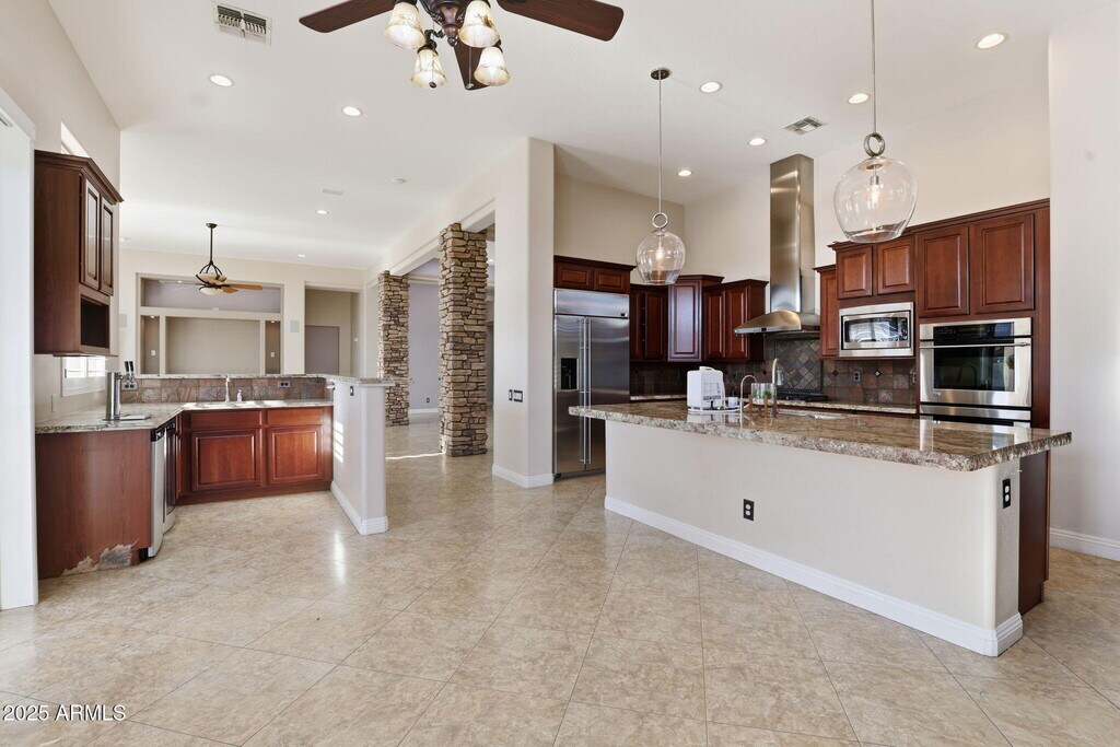 **Move in November Get November rent waived** Awesome open floor plan! Enter into formal dinning great room. Kitchen includes large island/breakfast bar,gas cooktop,double oven for the chief in the family. Bay window eating nook,walk in pantry,granite counters. Bar area between kitchen & great room for entertaining. Large primary bedroom with seating area,separate vanities,garden tub,snail shower and walk in closet. Open Den/office off great room. Remaining 3 bedrooms all have full bath and walk in closets. 3 car garage. Beautiful backyard boosts pavers,covered bbq area,covered patio,putting green for those fun get togethers. Close to 101 and mountain tails. Tenant to verify all schools.