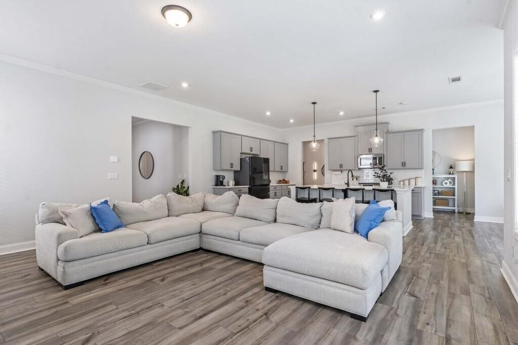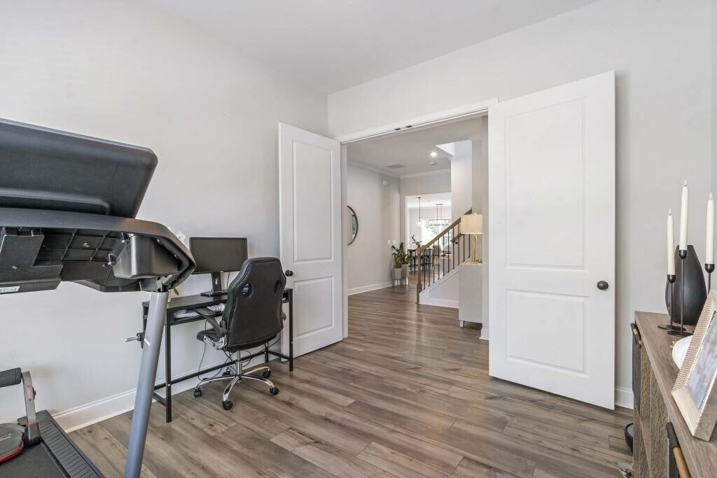 This home is truly better than new,offering a phenomenal floor plan with all of today's most sought-after features. Enjoy the ultimate in style and easy maintenance with LVP flooring throughout the home,no carpet! The main level provides a dedicated home office with elegant double French doors,while the chef's dream kitchen features a scullery area,a massive walk-in pantry,and overlooks the living space. Upstairs,you'll find a versatile bonus loft space,a huge walk-in laundry room with a sink,and four generous bedrooms with ample closet space. Step outside to one of the neighborhood's largest,private,fenced backyards,complete with an oversized back patio perfect for entertaining. The community boasts fantastic amenities,including a pool and pickleball courts,and the unbeatable location puts you near the Mall of Georgia,major highways,top-rated school districts,and all the excitement around Coolray Field. $15 technology charge.