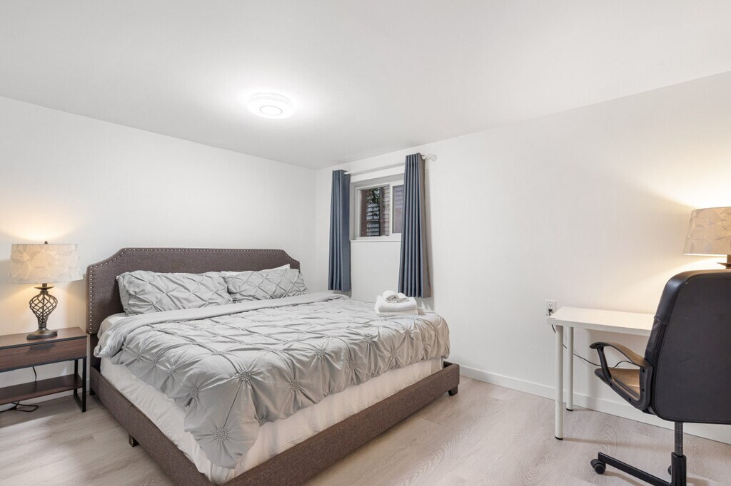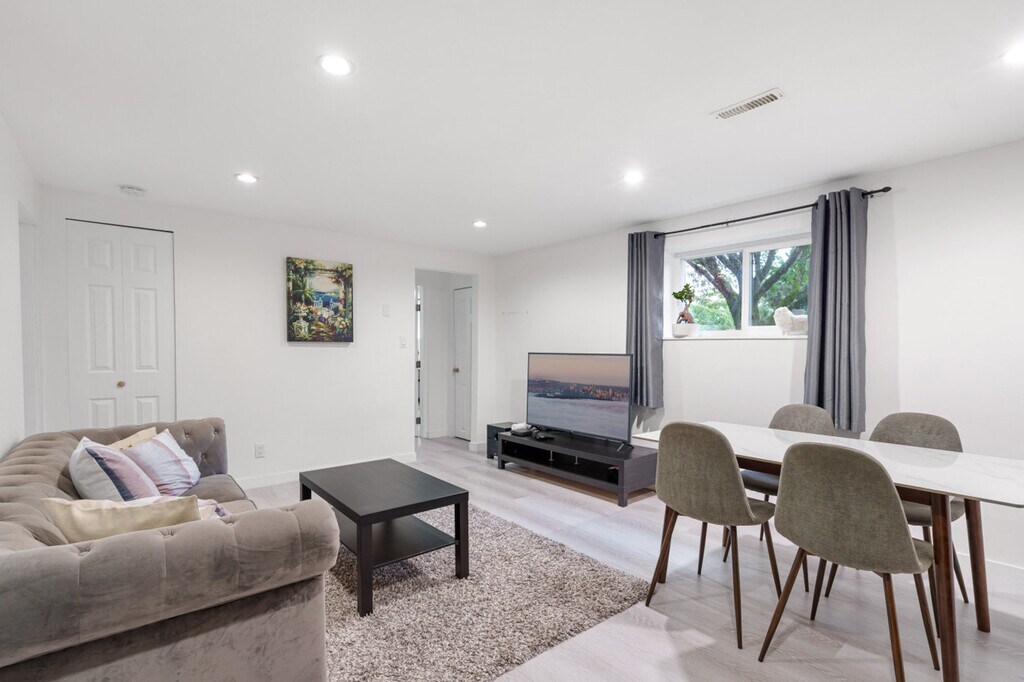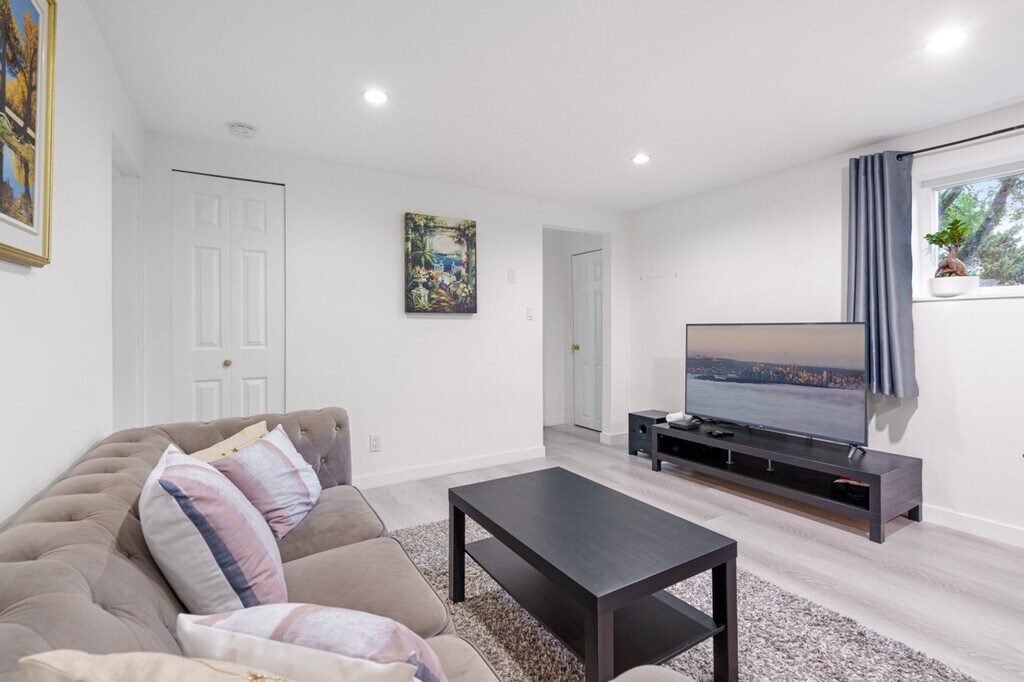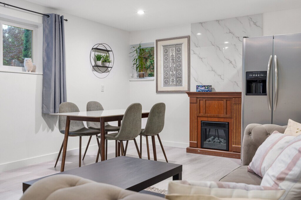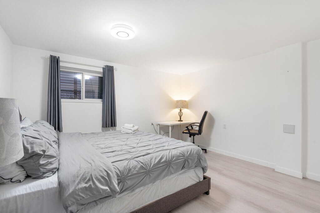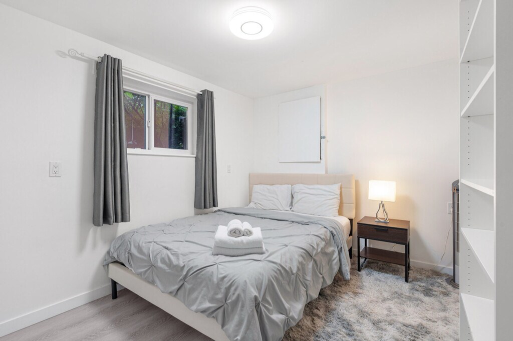 Bright 3-bedroom, 1-bath home in East Vancouver with private entrance and backyard space. Comfortably hosts up to 6 guests with a minimum stay of 90 nights. Features a modern kitchen, dining, and a cozy living area. Shared laundry on site is free. The apartment boasts a modern kitchen, dining area, and a cozy living space, perfect for relaxing or entertaining. Shared laundry facilities are available for guest use at no cost. Street parking is available for guests. Located in East Vancouver, this home offers easy access to the vibrant city life while providing a peaceful retreat. Enjoy the convenience of nearby public transportation and explore the local attractions. Guests are asked to be mindful of noise due to the basement suite below. Quiet hours are required to respect the separate basement suite. The TV is currently out of service and not listed as an amenity. Strictly no smoking anywhere on the property and no parties or unauthorized guests are allowed.