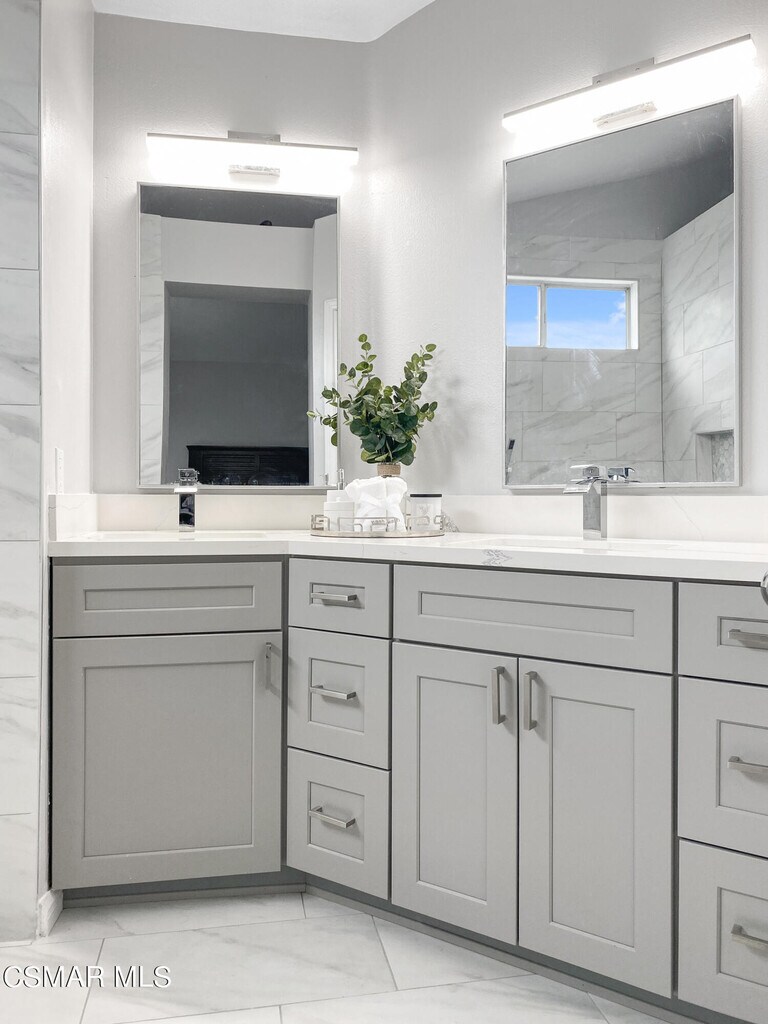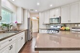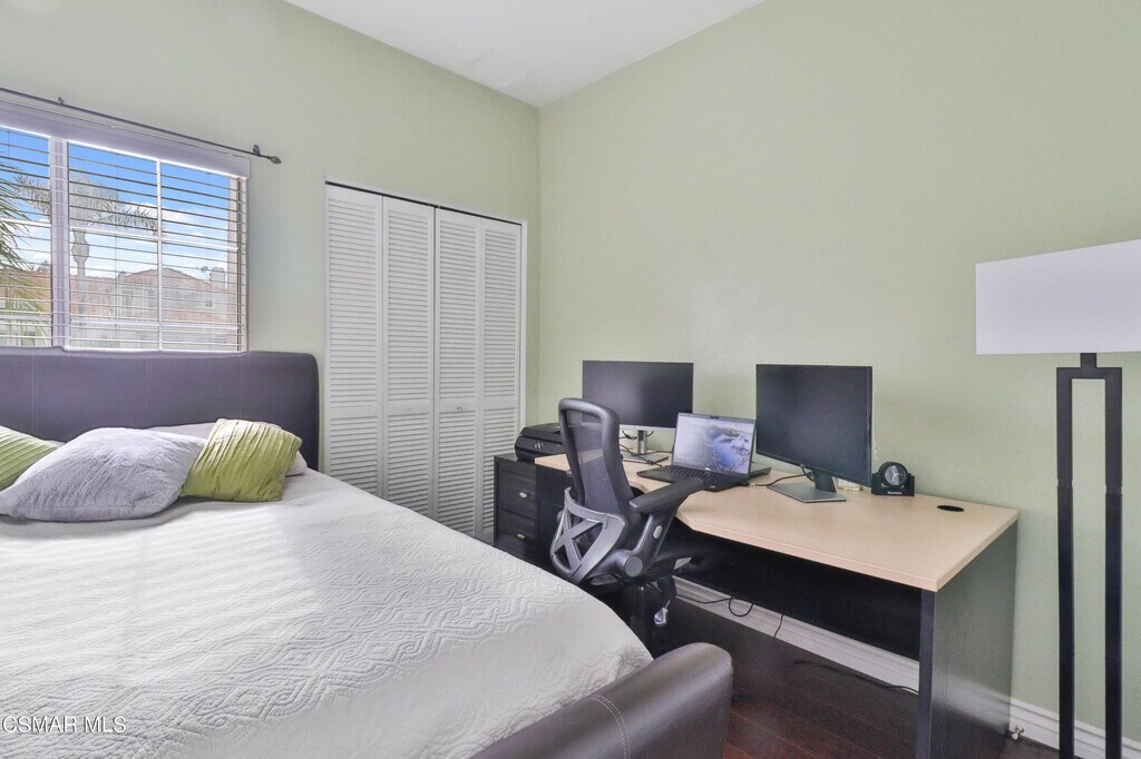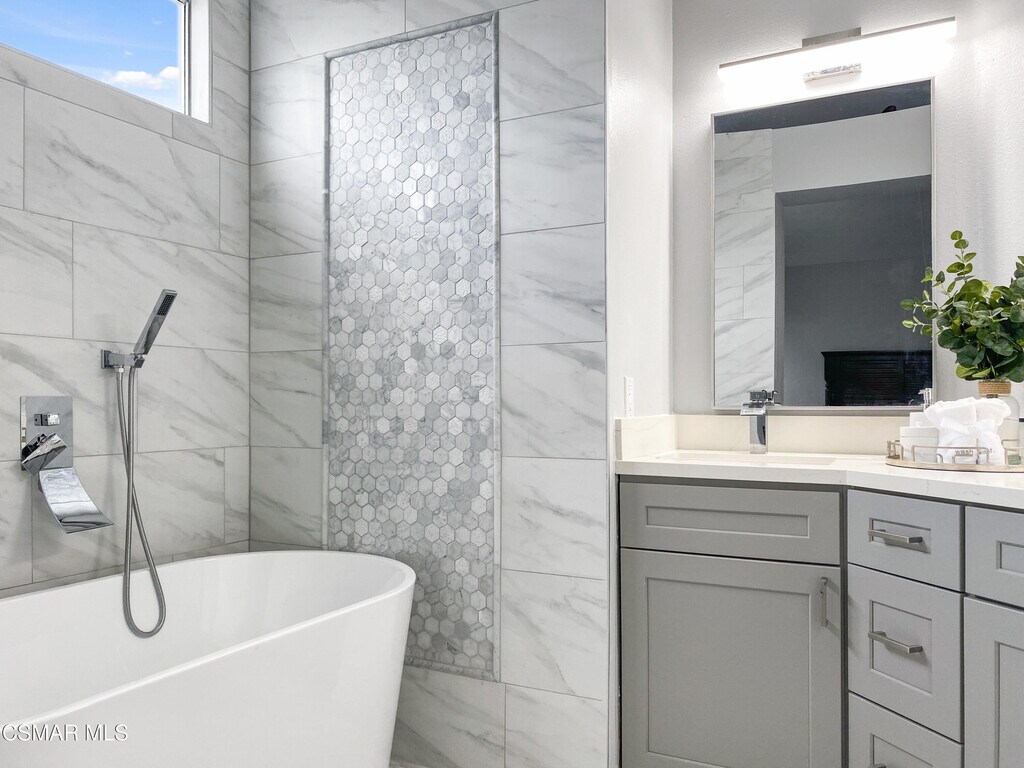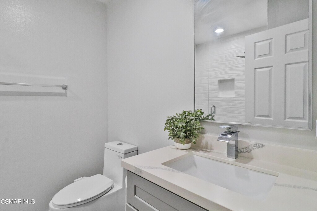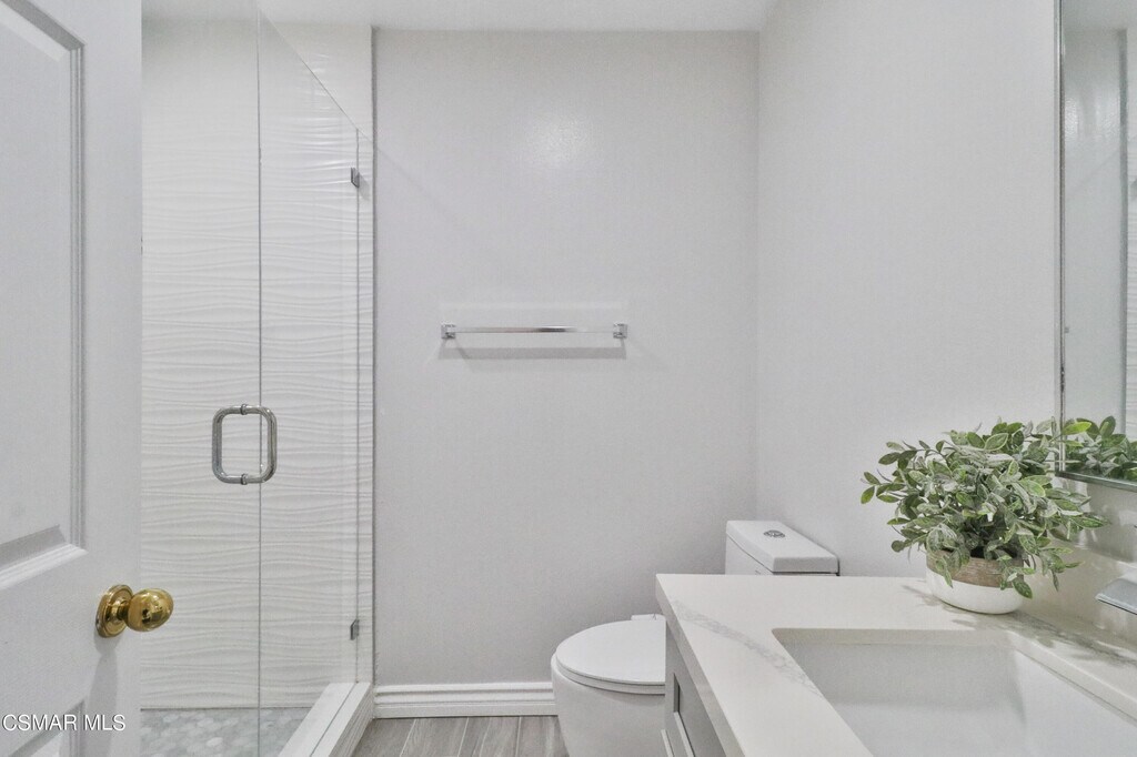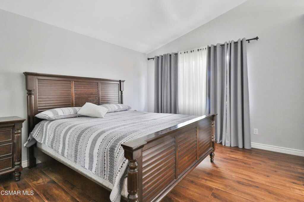 Beautifully updated 4-bedroom in Central Simi! Rich wood-like flooring throughout with high ceilings and plenty of natural light. Updated kitchen boasts quartz countertops, white cabinetry and stainless appliances. Downstairs bedroom and bath, a plus. Additional 3 bedrooms up, including primary with remodeled en suite bath with dual sinks, shower stall and separate tub. Backyard has grassy areas and lots of privacy. Direct access to 2-car garage. This home is impeccably cared for... true pride of ownership!