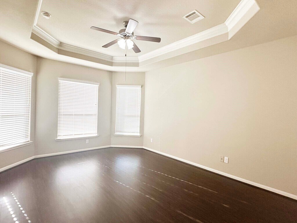 Stunning 4-Bedroom Westin Home - Prime Location - Move-In Ready! Welcome to this beautifully maintained two-story home by the renowned Westin Homes,featuring a dramatic rotunda staircase and soaring ceilings throughout. With 4 spacious bedrooms and 3.5 baths,this home offers a thoughtful layout for both comfort and functionality. • Primary suite on the main floor with double-sink vanity and a full-size bath • Two full baths upstairs + half bath near living room • Open-concept living area with 20+ ft ceilings connected to a full-size kitchen—perfect for entertaining • new flooring and staircase • Updated shower fixtures throughout • New fresh paint • Expansive backyard with room for a future pool Unbeatable location! Easy access to major highways,hospitals,colleges/universities,shopping centers,big-brand grocery stores,and the new Starbucks. Within walking distance to a scenic waterfront trail system,renovated community pool,playground,and basketball court. MLS# 64411986