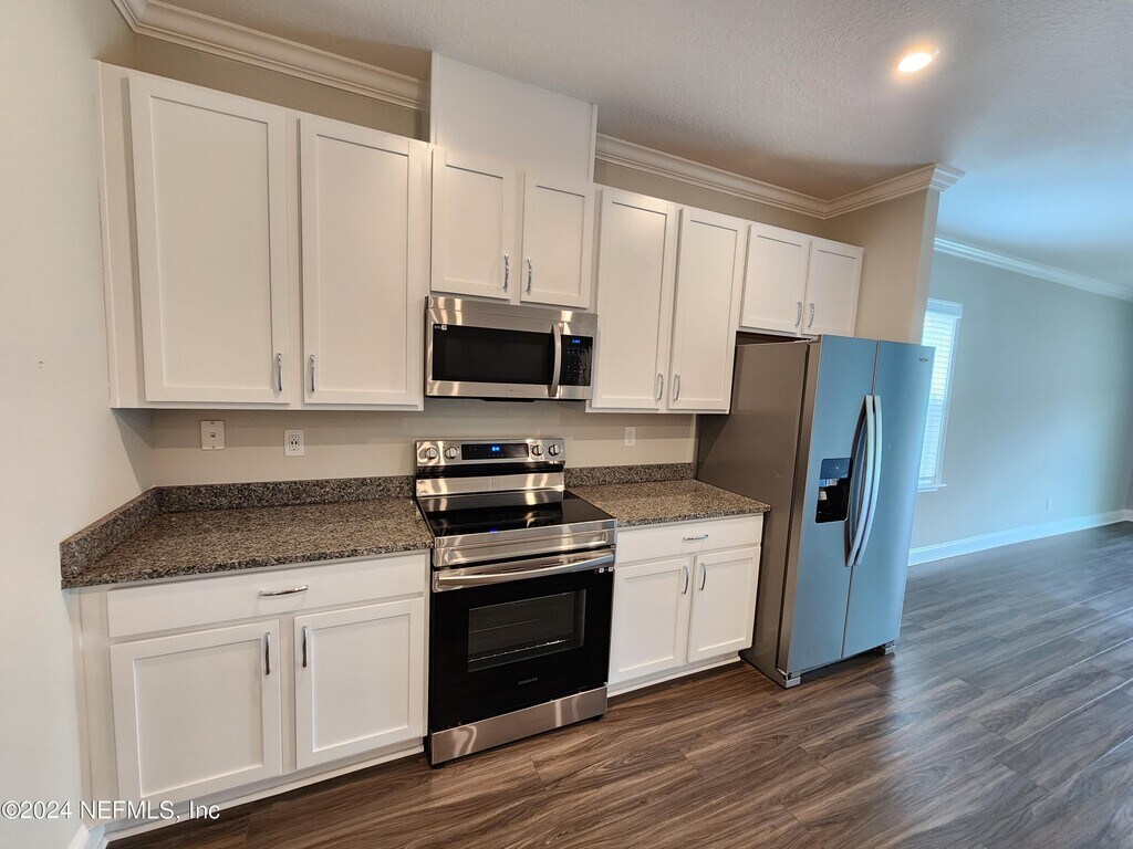 MOVE-IN READY! Great location with zoned for the Clay County School District. Crown molding,extensive use of Vinyl flooring in most area and carpet in all bedrooms. All kitchen appliances with washer and dryer included. Featuring Granite Counter tops and 42'' Cabinets. Huge Kitchen/Family/Dining Combo space. Beautiful California Kichen Island,Huge backyard with quiet area and beautiful pond view on the side. All fenced backyard. Convenient location nearby Walmart,Lowe's,Home Depot and etc. Don't let this slip away,it won't last long.