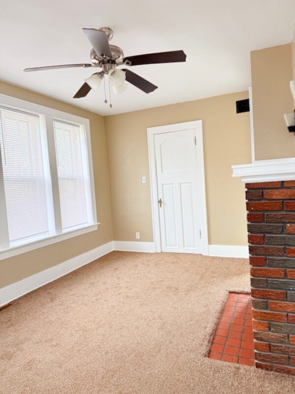 This apartment features a bright and inviting living space with neutral paint tones and updated carpeting throughout, creating a clean and comfortable atmosphere. Large windows allow for excellent natural light, while the ceiling fan with overhead lighting provides both comfort and energy efficiency. The room includes charming original details such as wide white trim and classic French-style double doors, adding character and charm to the space. The layout offers flexibility for a living room, bedroom, or office setup depending on your needs. Ample wall space makes furniture placement easy, and the freshly maintained flooring gives the unit a move-in-ready feel. Interior Highlights Fresh neutral paint Updated carpet Ceiling fan with light fixture Large windows with natural light Classic French doors Wide trim and original character Clean, move-in-ready condition