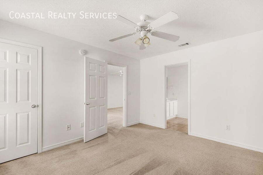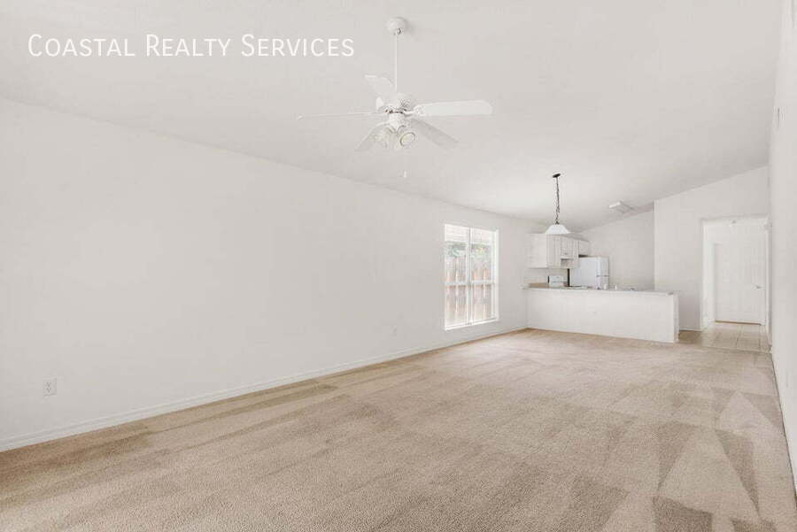 This nice home offers an amazing open floor plan for the dining, living and kitchen area. Master suite has it's own bath. Back yard has a chain link fence and is next to a fun/curvy walking trail that goes behind all of the homes on this small block. Flooring is carpet and tile throughout. Sorry no pets allowed. All Coastal Realty Services residents are enrolled in the Resident Benefits Package (RBP) which includes renters insurance, HVAC air filter delivery (for applicable properties) and our best-in-class resident rewards program, and much more! More details upon application.