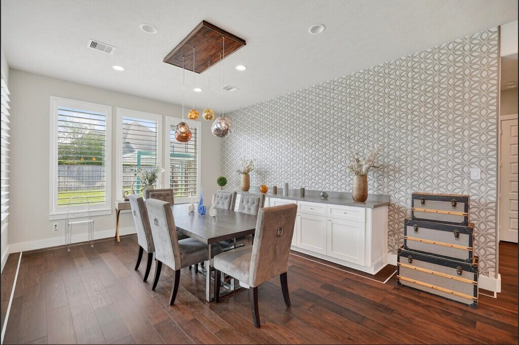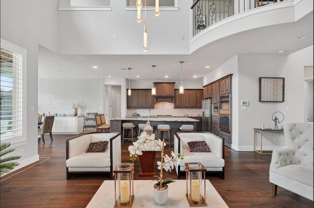 Luxury meets lifestyle in the Woodlands in Creekside Village,steps from ponds,trails,and parks. Enjoy top-rated Tomball schools and stunning upgrades: wood floors,3D tile dining wall,built-ins with quartz surfaces and lots of drawers in dining,home office & theater,fireplace with accent lights,and built-in speakers. Intelligent switches in kitchen,office,master,and theater work with Alexa/Google Home. Entertain outdoors with porcelain-tiled backyard and granite outdoor kitchen,and park easily in the three-car epoxy garage. An impressive chandelier and sleek finishes make this home modern,elegant,and move-in ready! You can see the video of the house on youtube searching "26 argosy bend pl MLS# 55399841